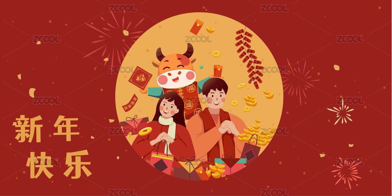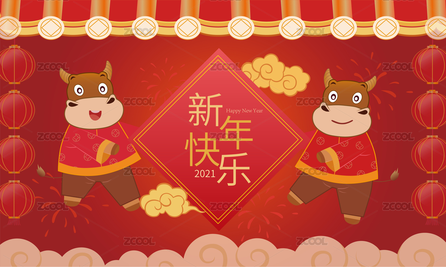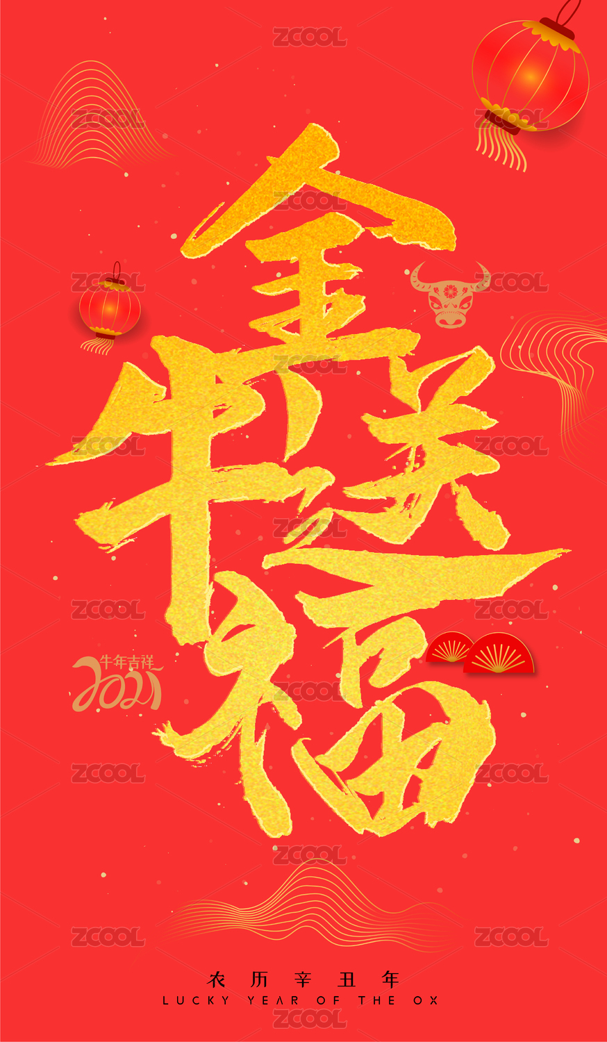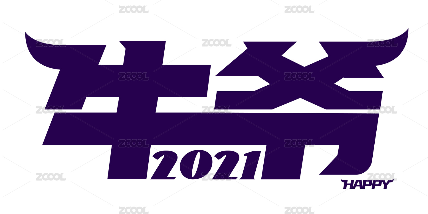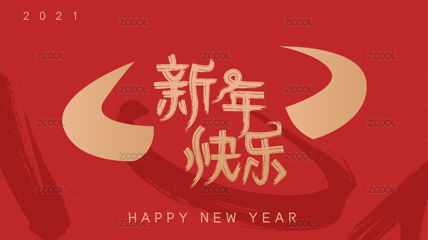 happy牛爺牛年快樂字體設(shè)計(jì)
