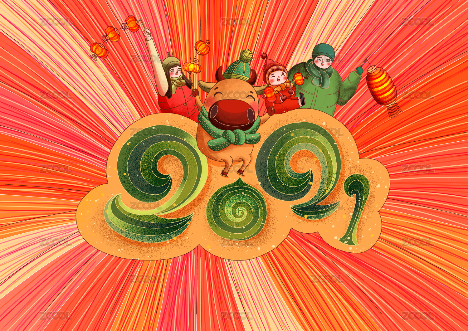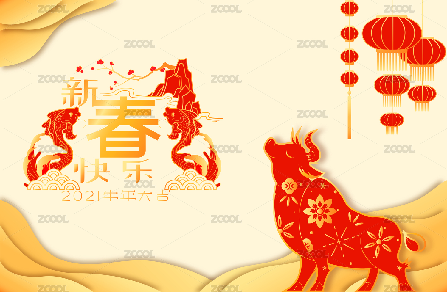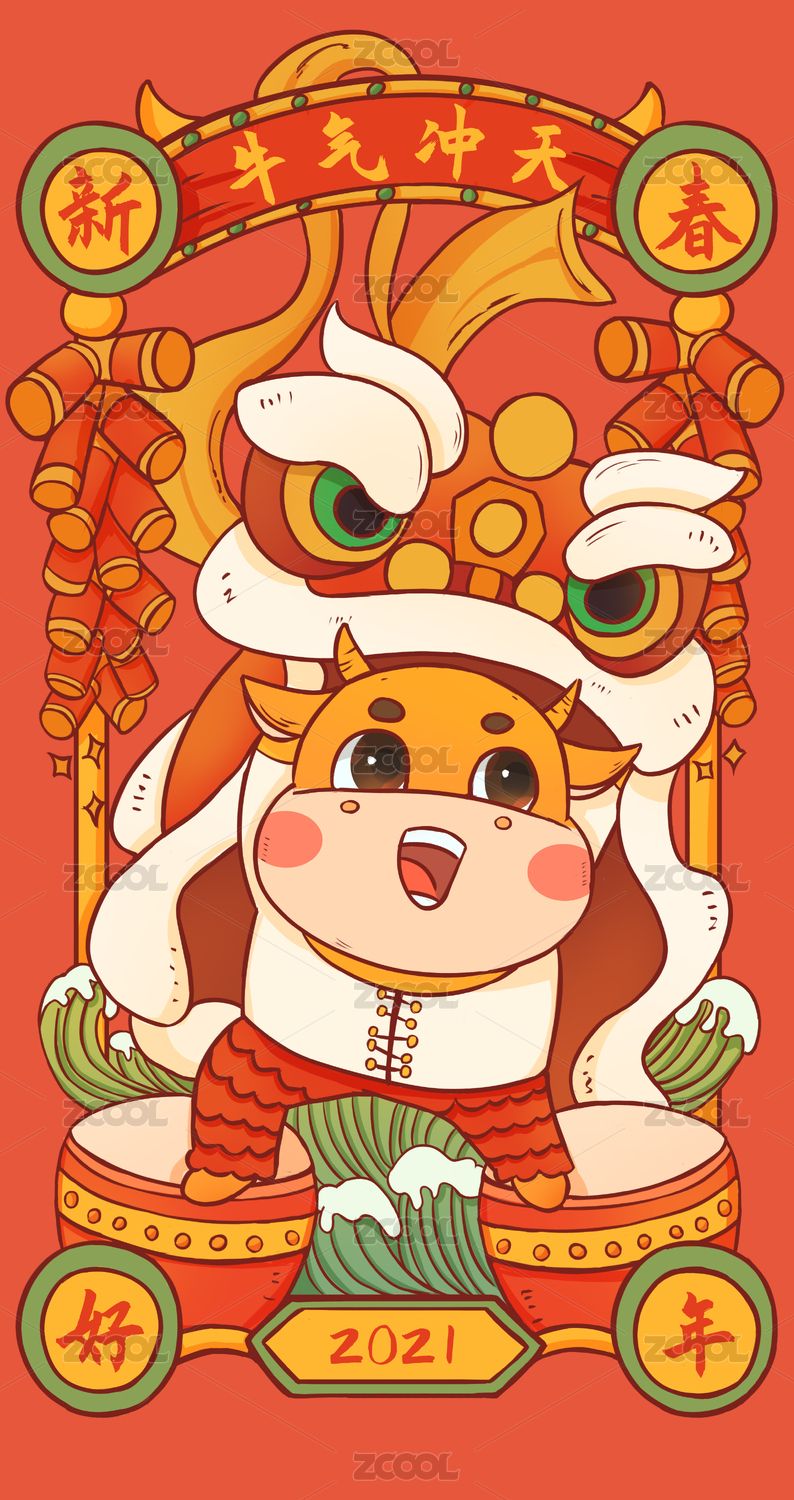 2021牛年春節(jié)牛氣沖天扭轉(zhuǎn)乾坤剪紙插畫