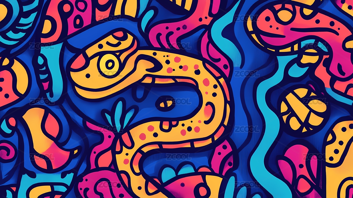 傳統中國新年紅底金色抽象蛇插畫海報背景