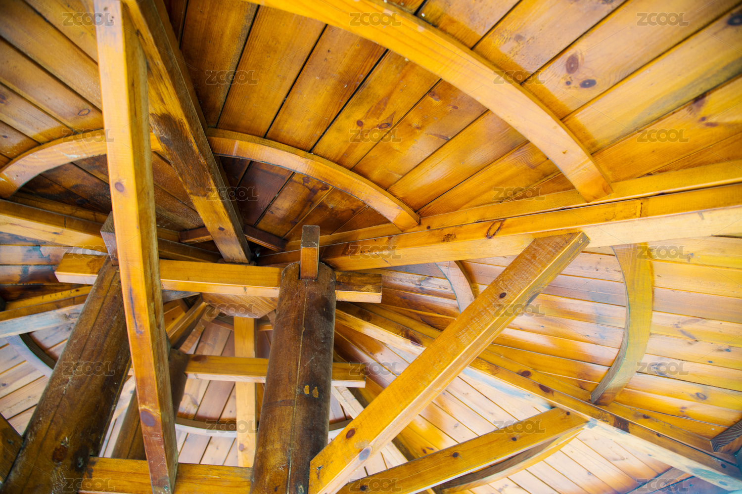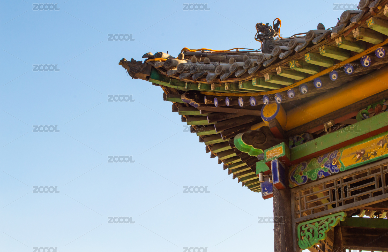 特寫古代中式傳統(tǒng)木制建筑的木屋頂