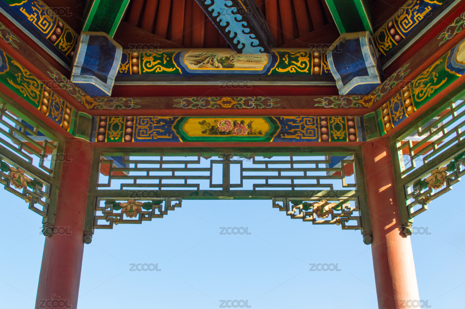 中國(guó)傳統(tǒng)木制建筑亭子的廣角結(jié)構(gòu)/邊框素材
