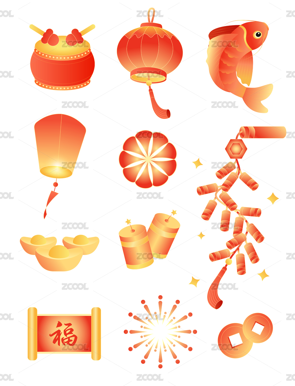 新年元素高清矢量漸變插畫
