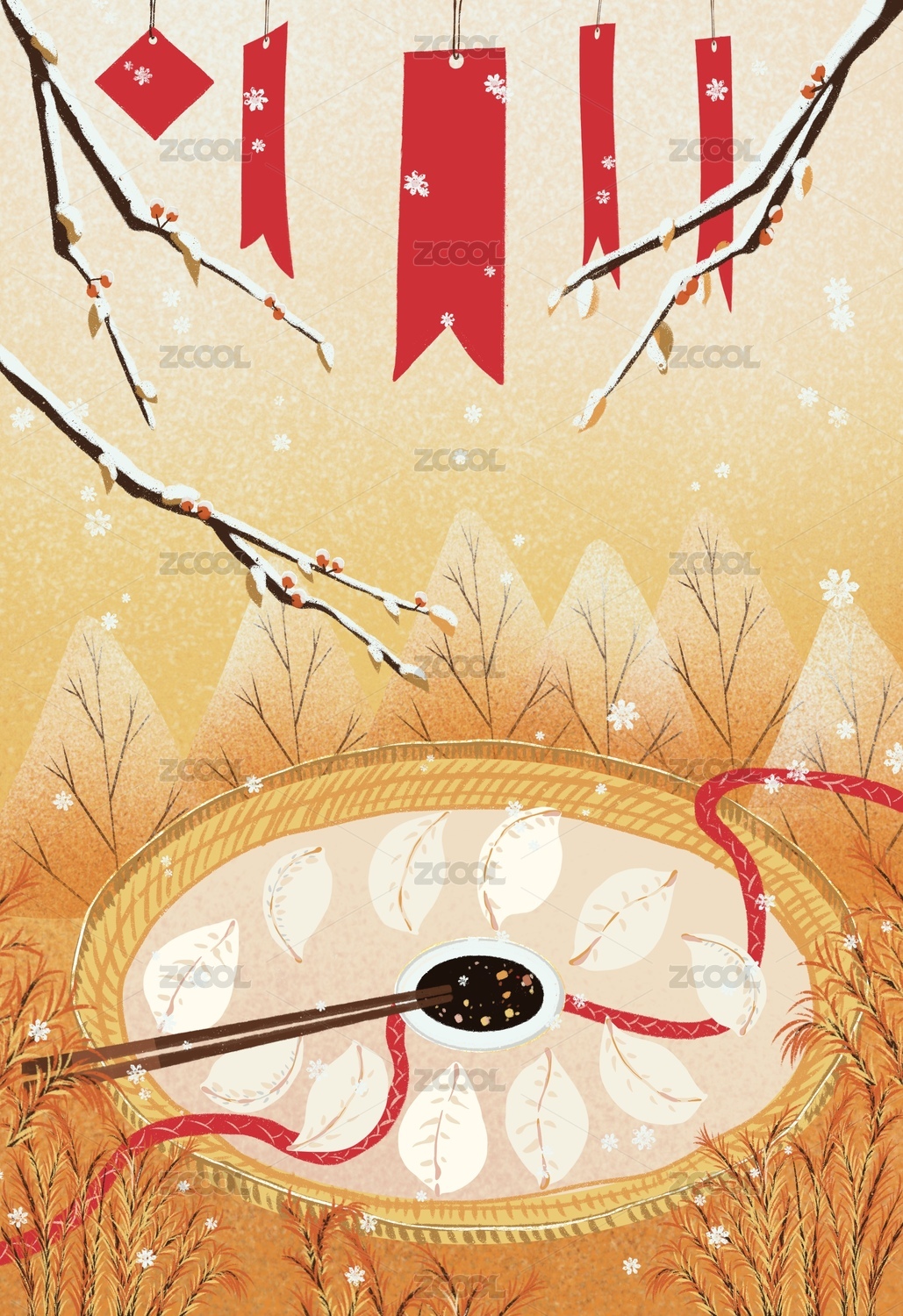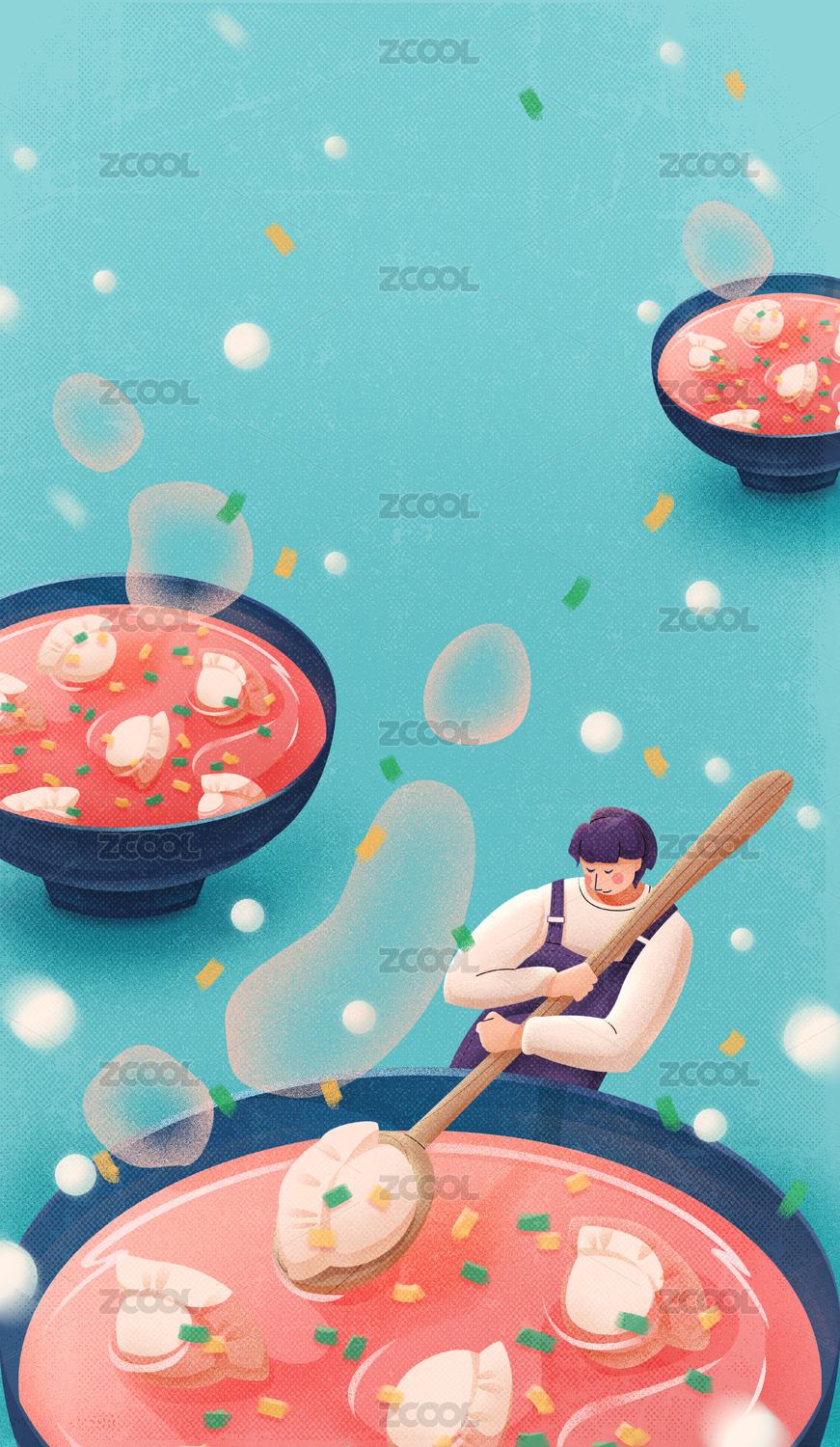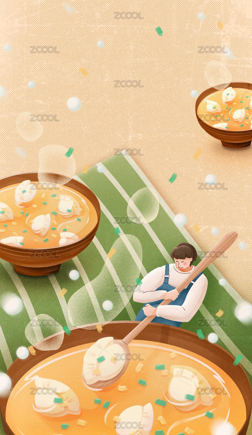 冬至餃子豎構(gòu)圖手繪插畫節(jié)氣