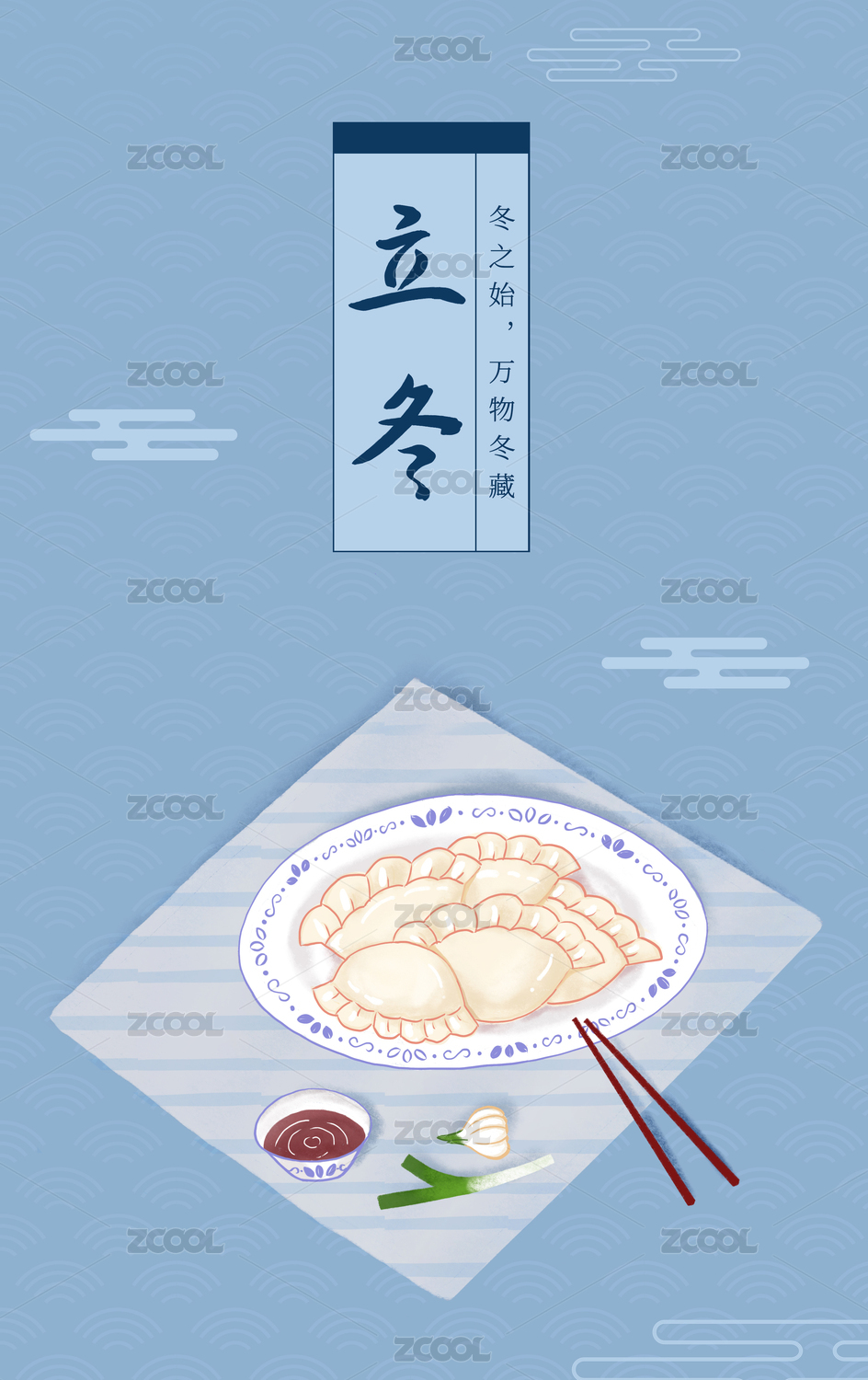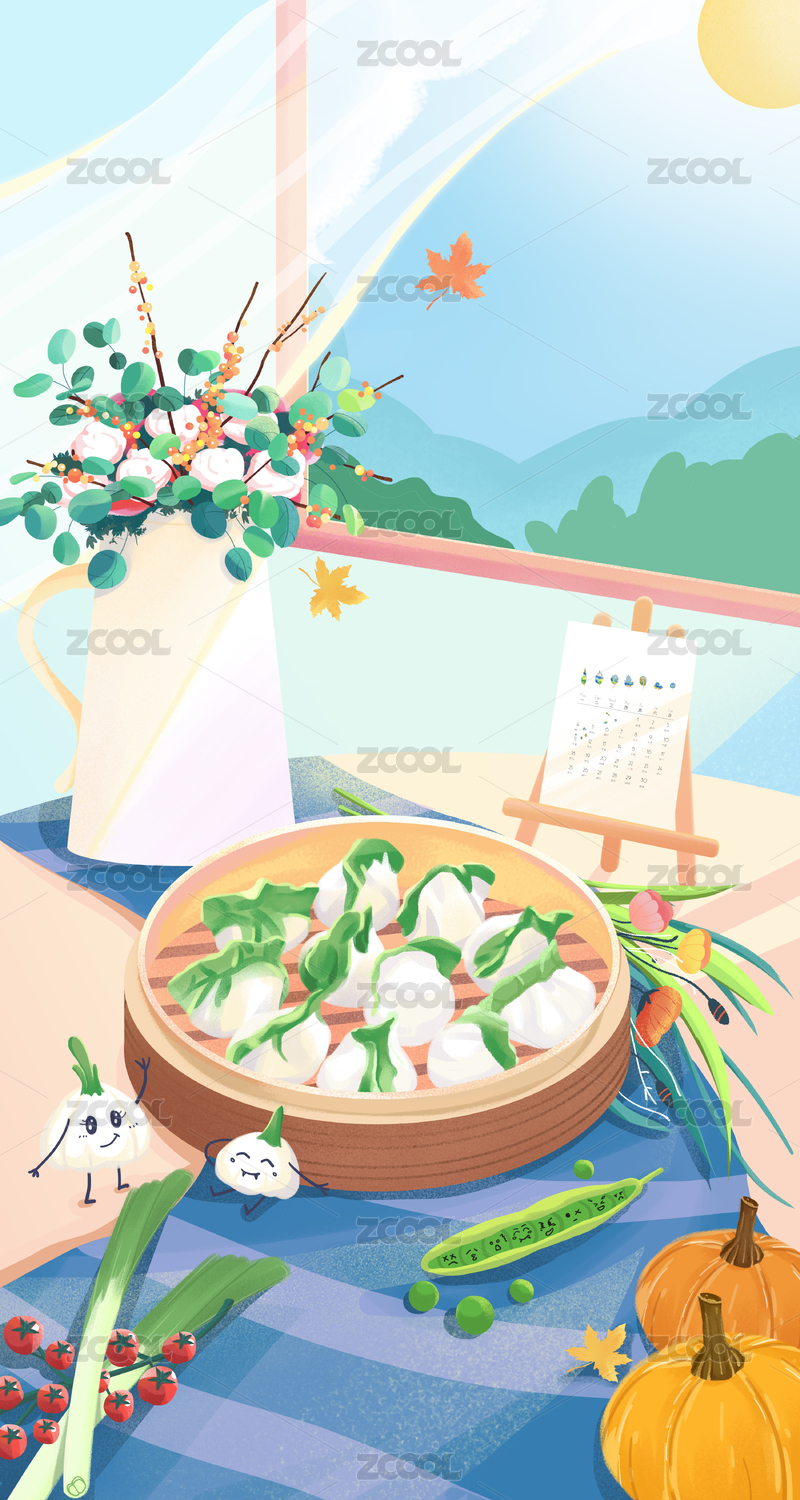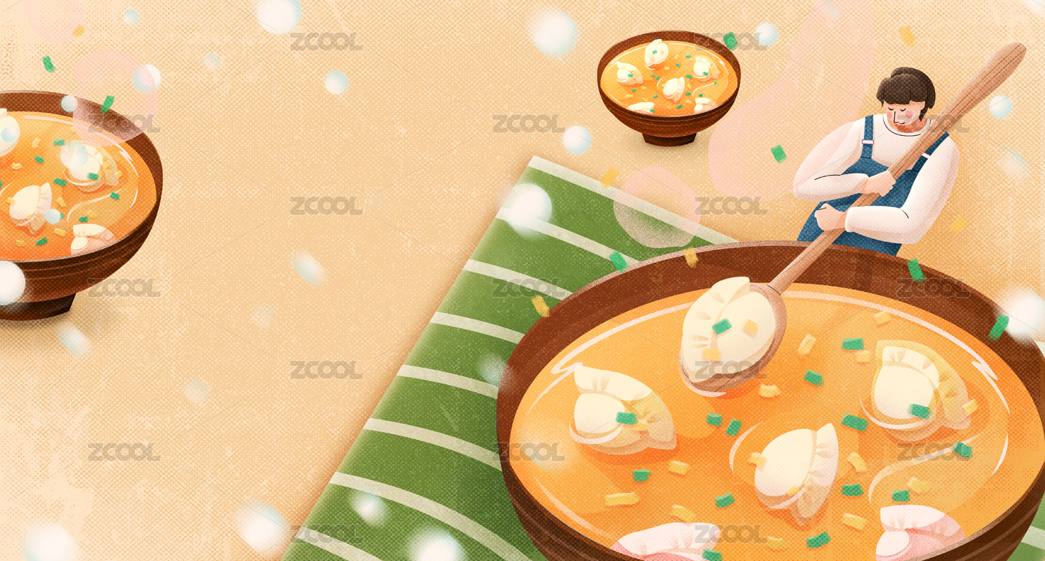 冬至餃子豎構(gòu)圖手繪插畫節(jié)氣