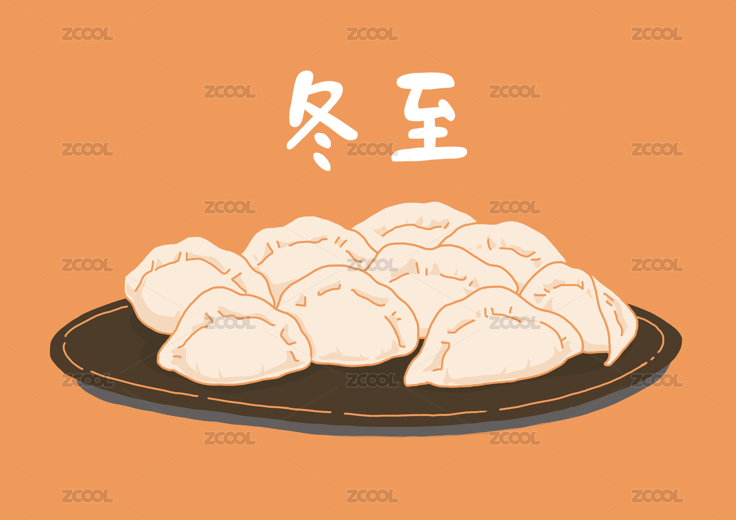 立冬節(jié)氣餃子手繪插畫,字體為手寫字體和思源宋體