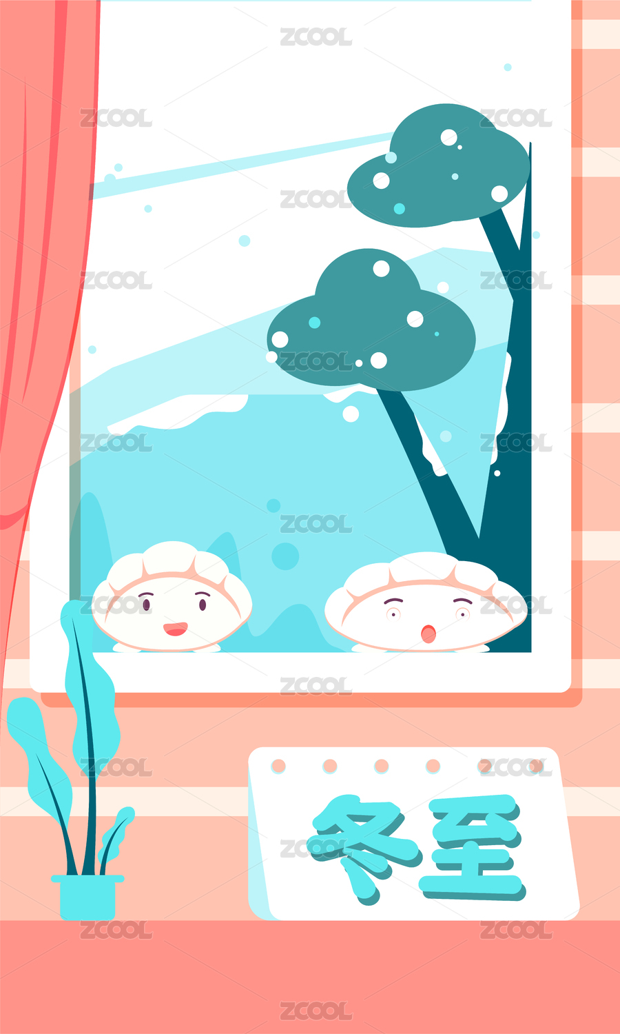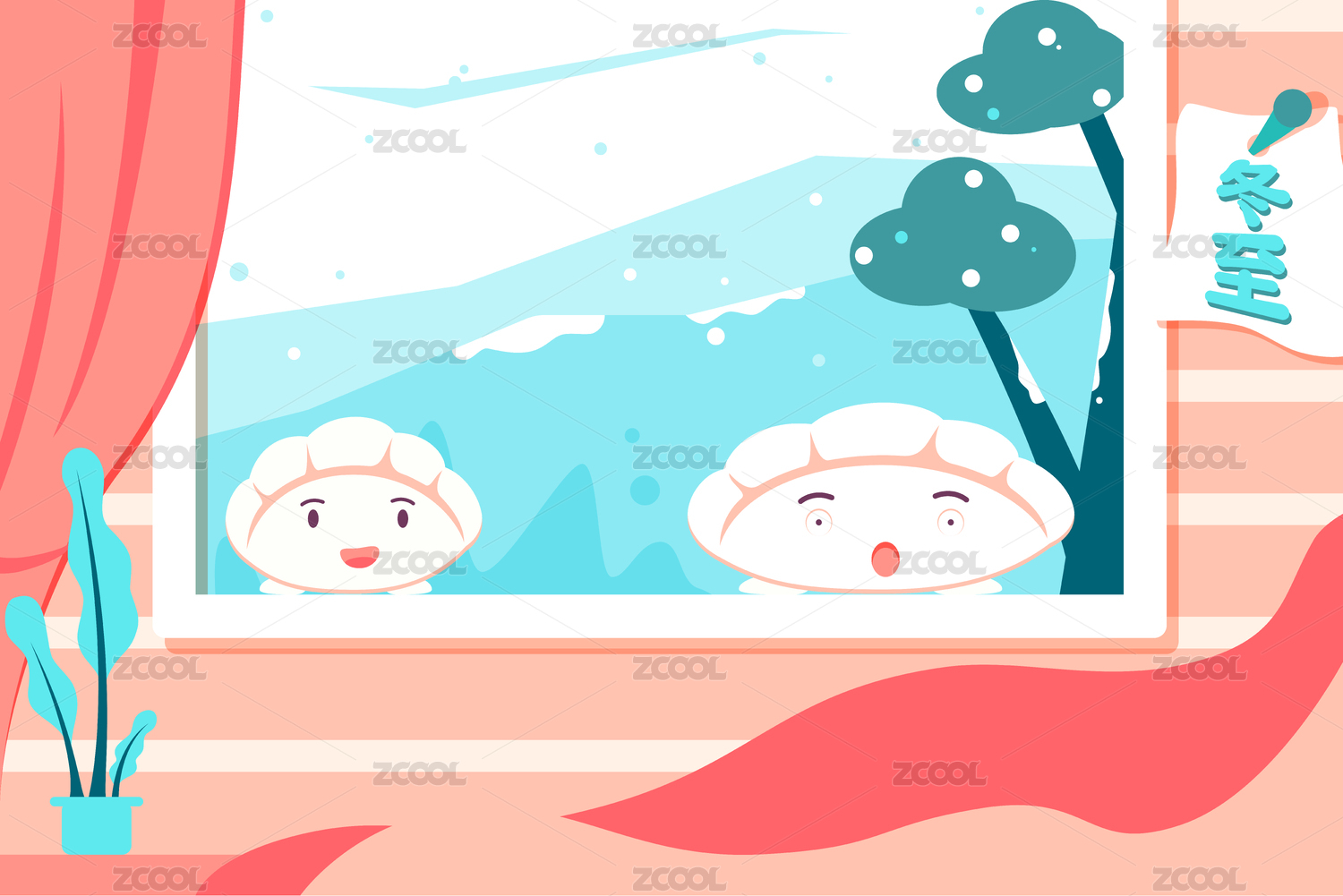 傳統(tǒng)節(jié)氣立冬站在窗戶上的餃子手繪矢量插畫