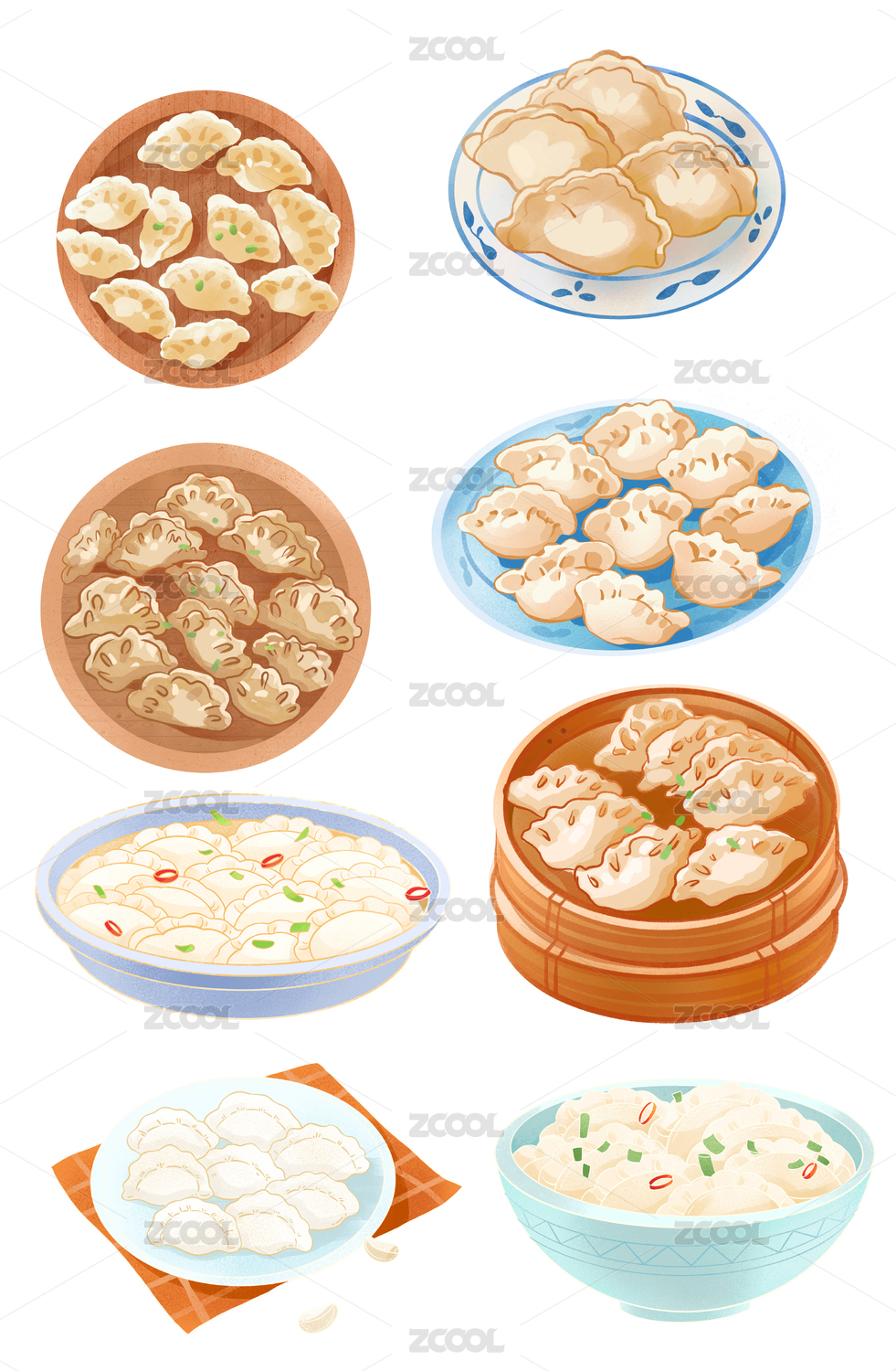 手繪矢量餃子年節(jié)日冬至食物面食傳統(tǒng)