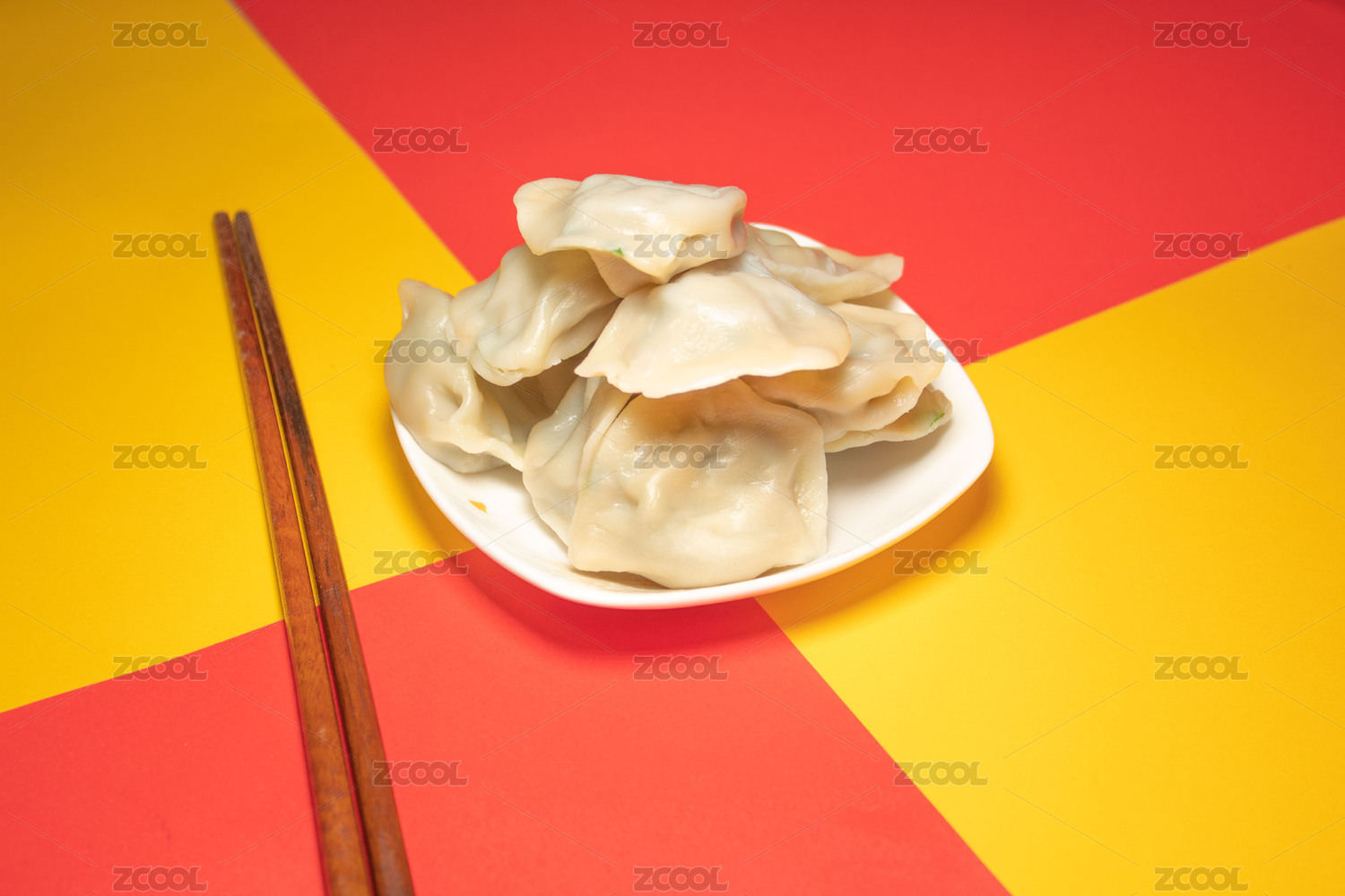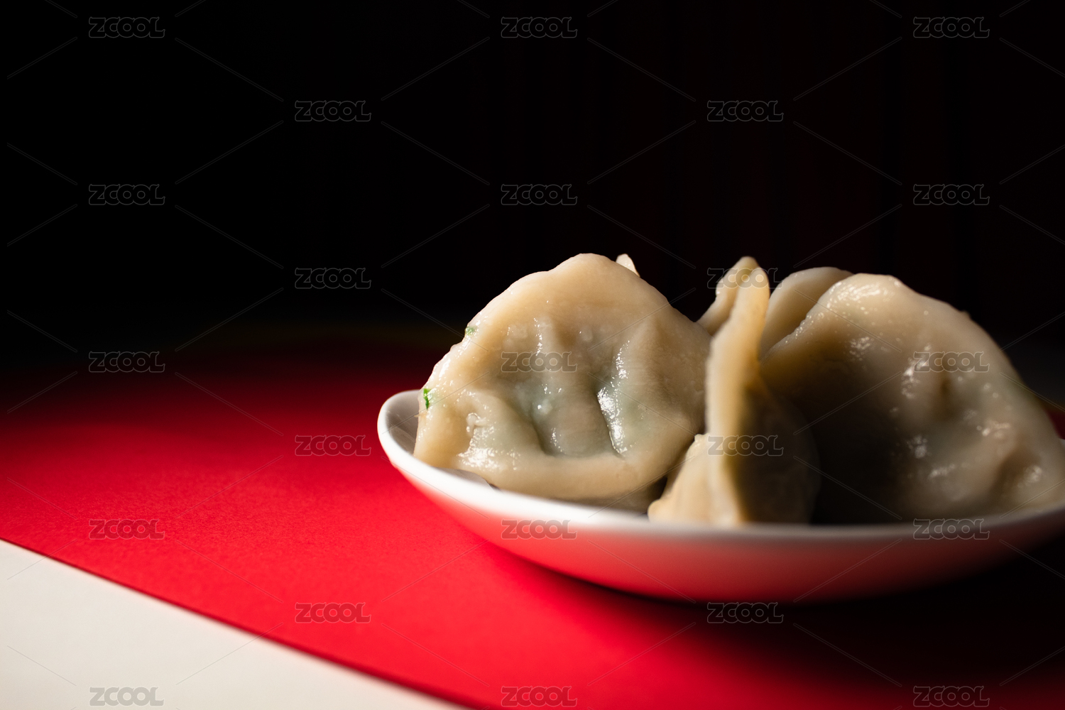 紅背景上一盤餃子