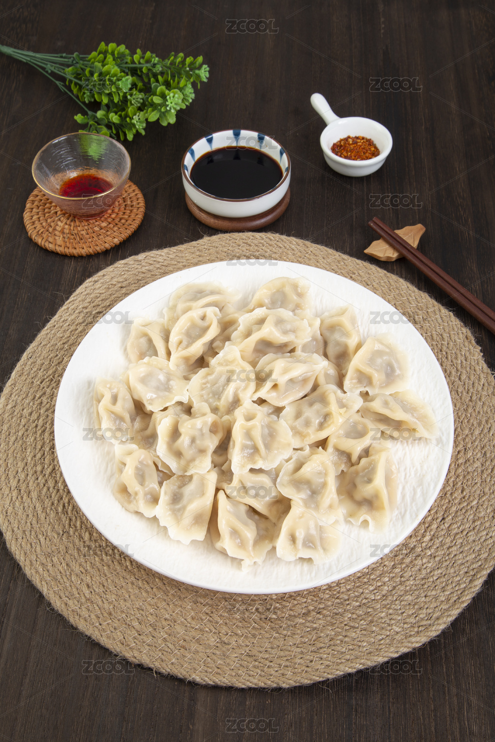 俯拍一盤餃子
