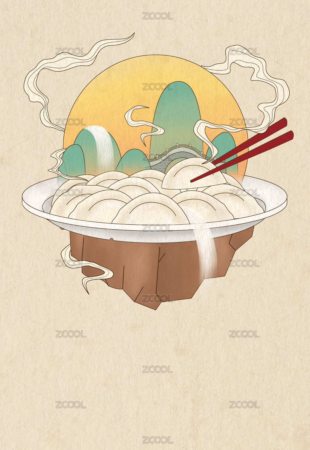 長在山上的一盤餃子,中國風