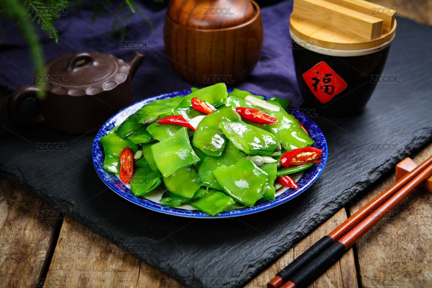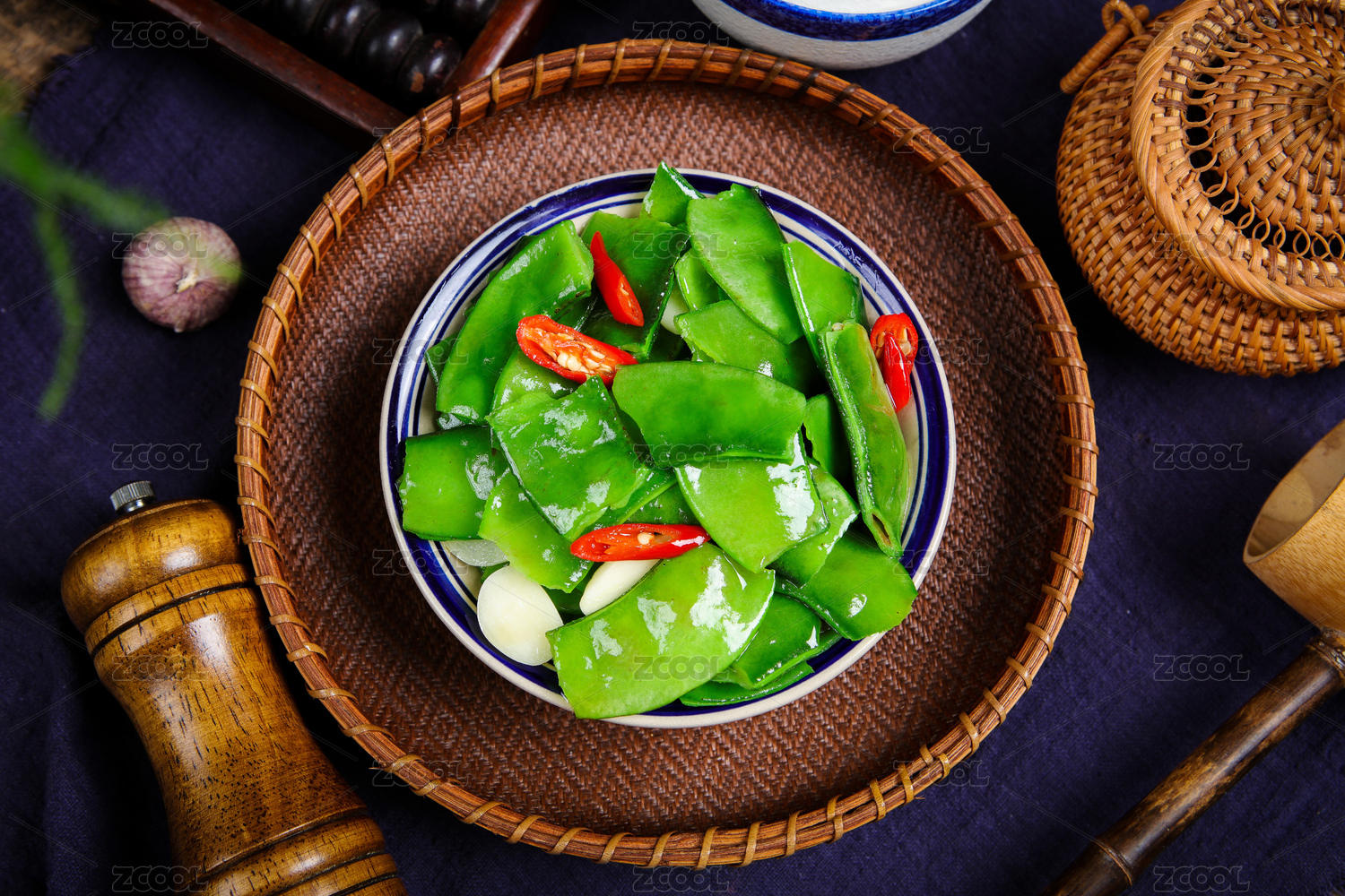廣東特色美食粵式蒜蓉炒豆角