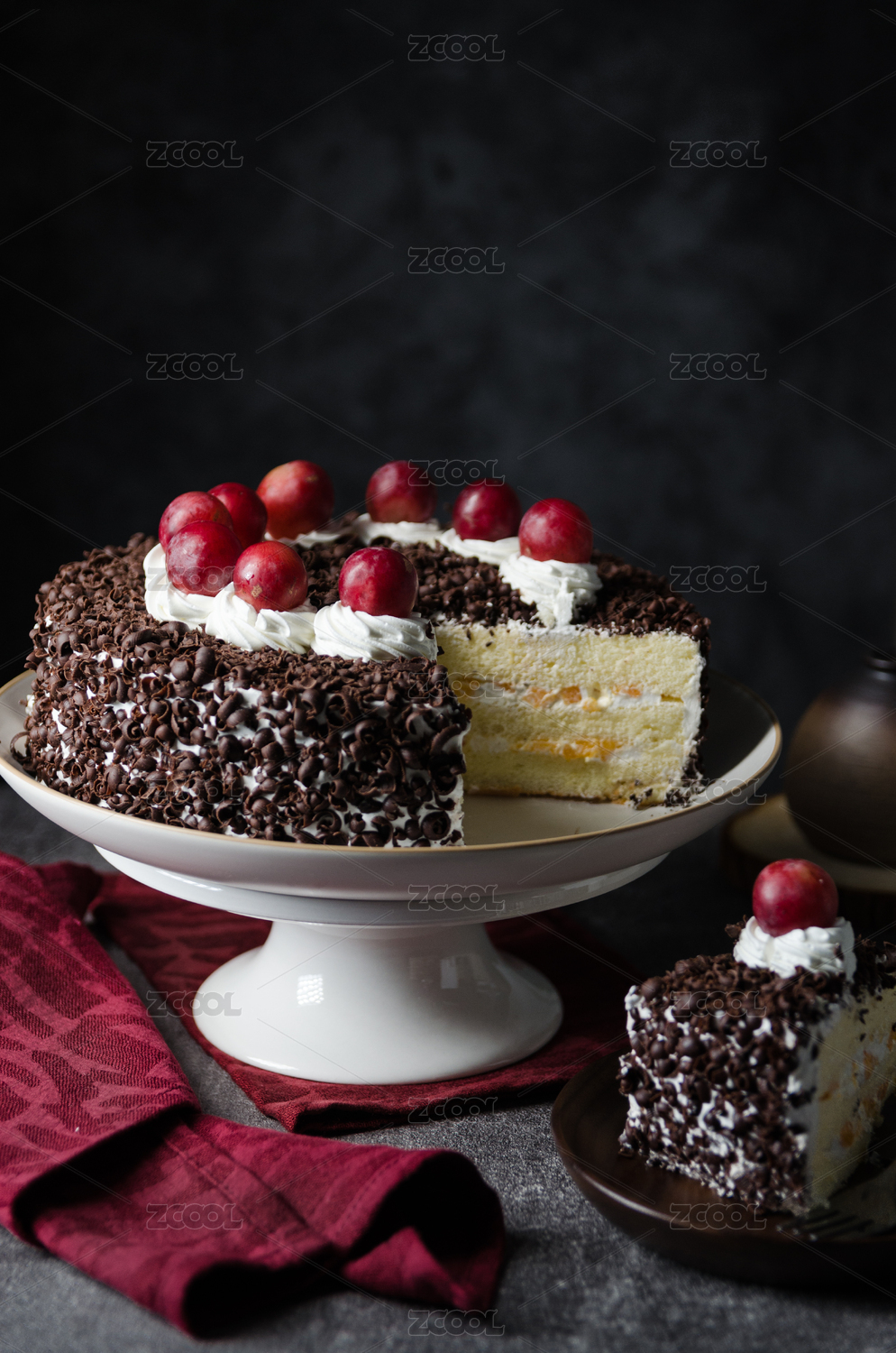 暗調(diào)背景里的一盤巧克力生日蛋糕
