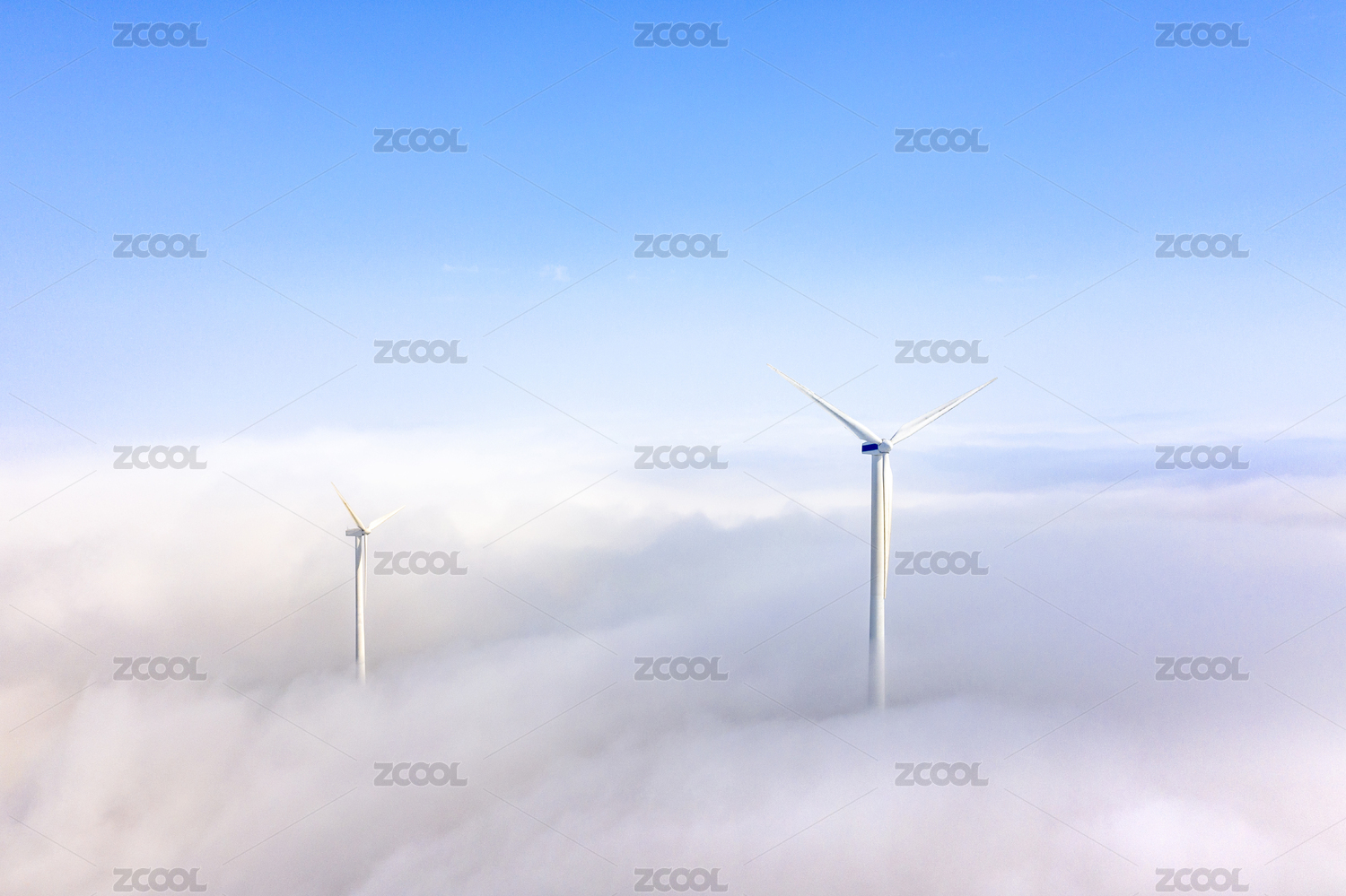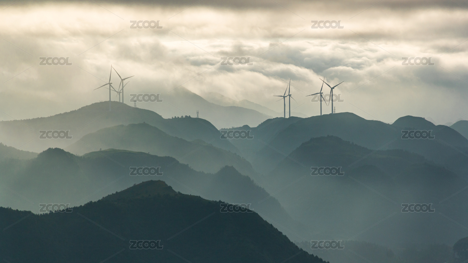 早晨云霧中的中國貴陽市高坡鄉(xiāng)的山和風(fēng)車