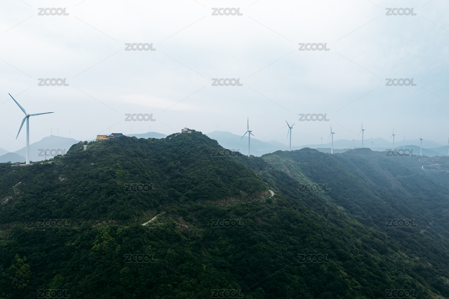 航拍岱山?jīng)鲋艥O村山上的風(fēng)力電機