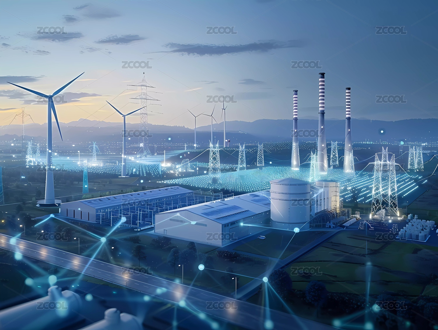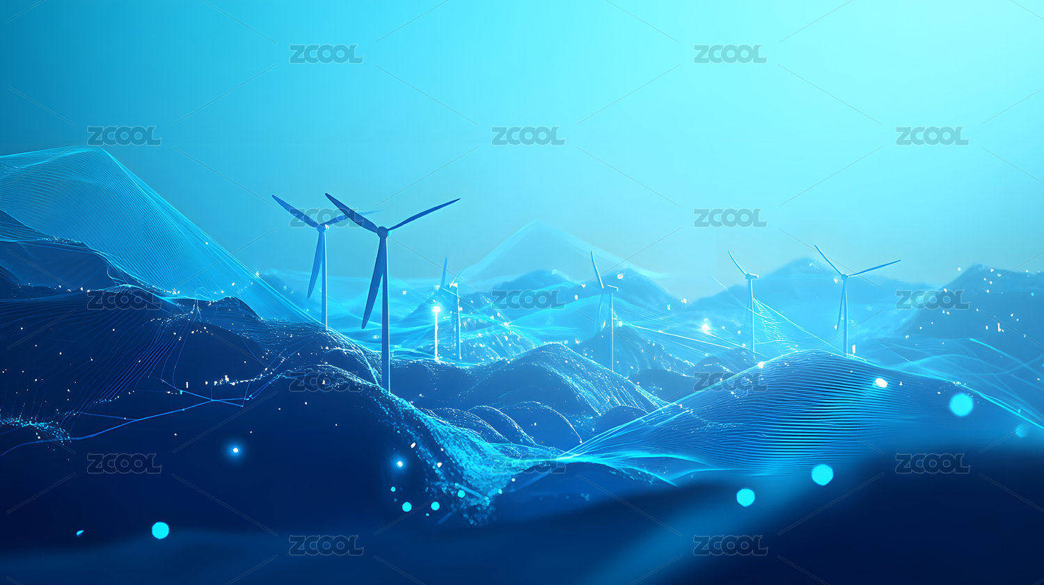 藍(lán)色科技感風(fēng)力發(fā)電場未來能源