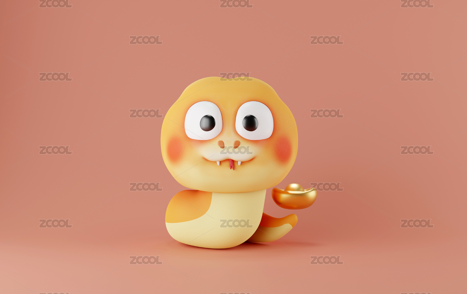 可愛的春節(jié)蛇年卡通生肖形象與如意元寶