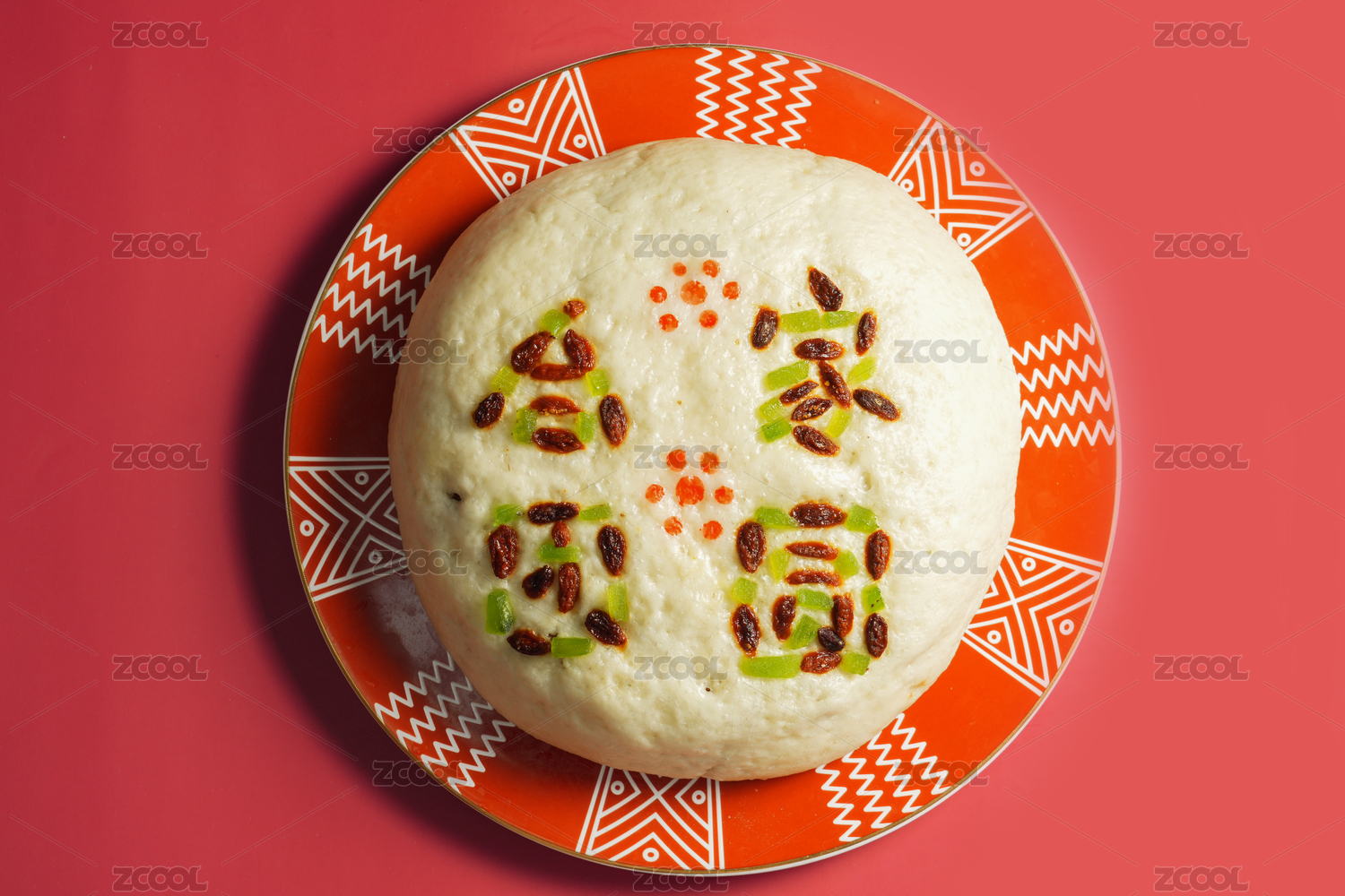 一個(gè)團(tuán)圓餅放在紅色的盤子里