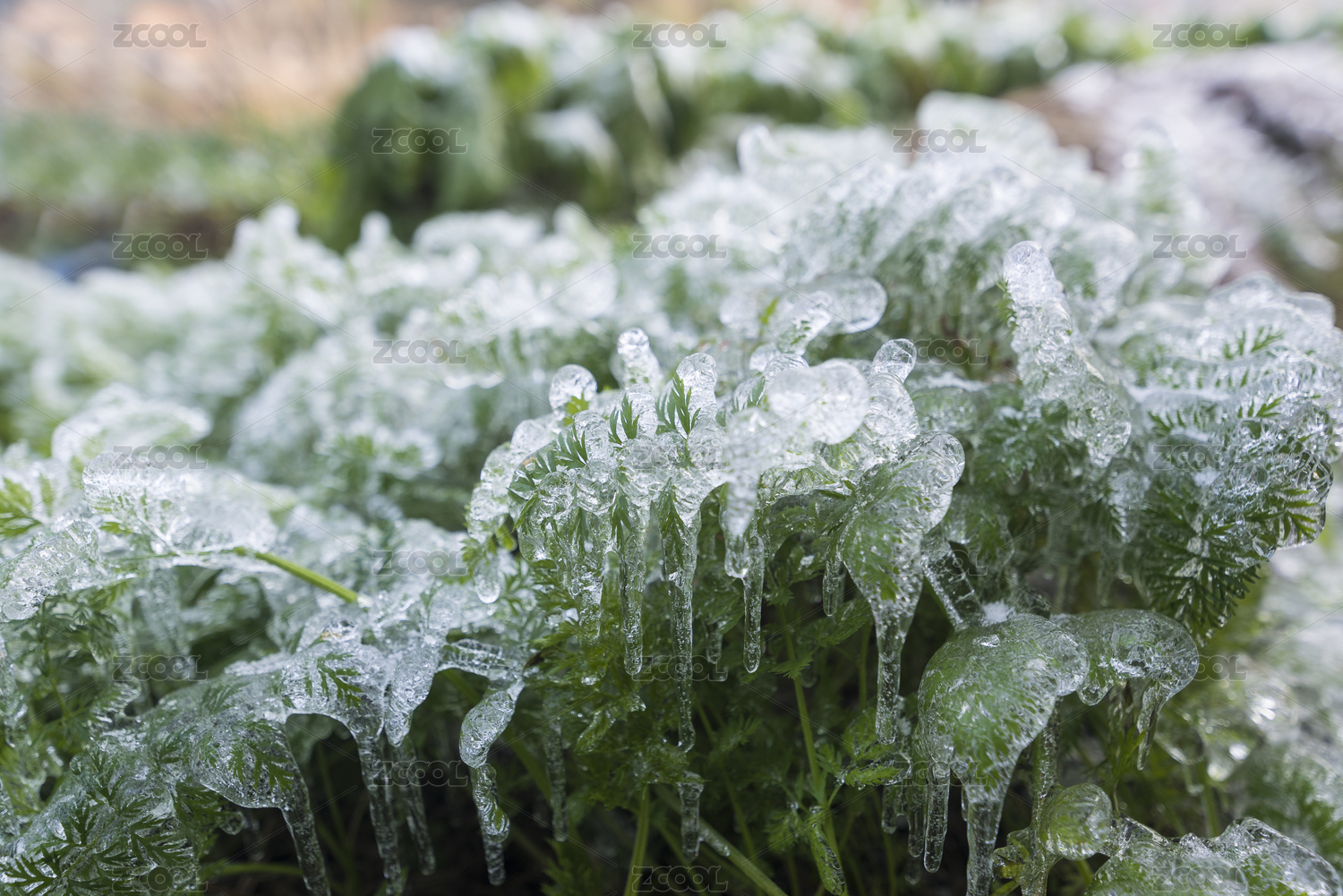 冬天被冰霜凍住的蔬菜葉子,中國(guó)福建長(zhǎng)汀