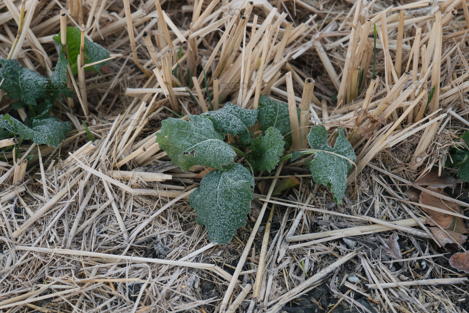 早晨田里打霜的菜葉