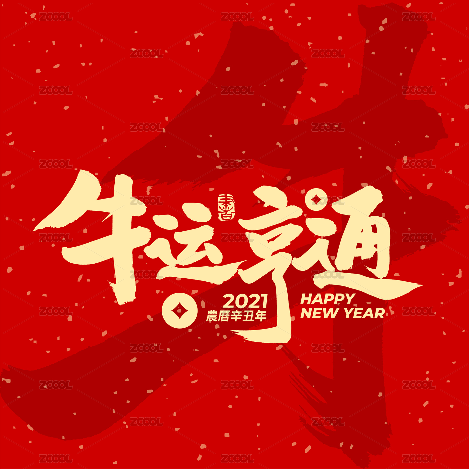 happy牛year-書法字體字形中國風(fēng)