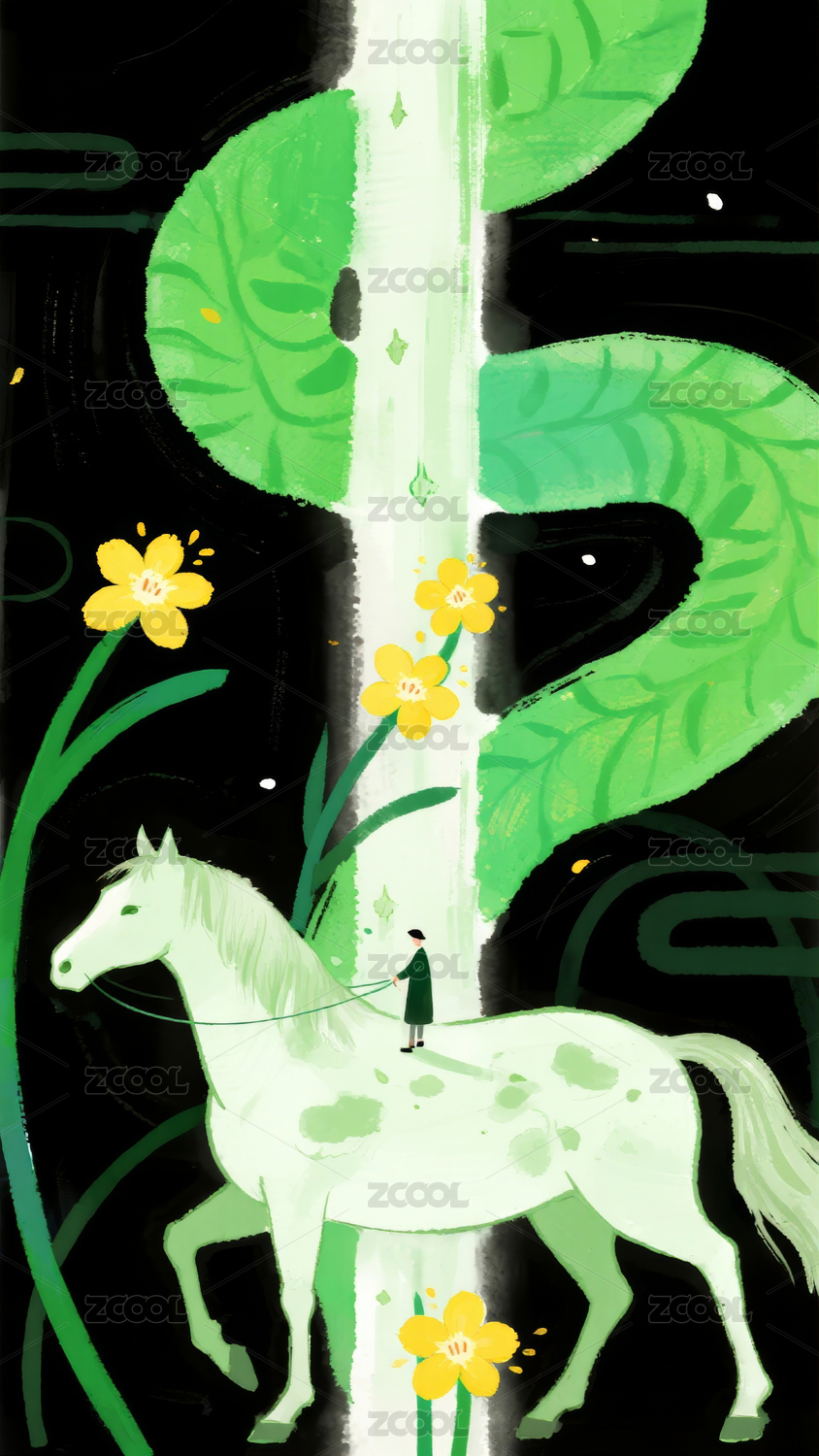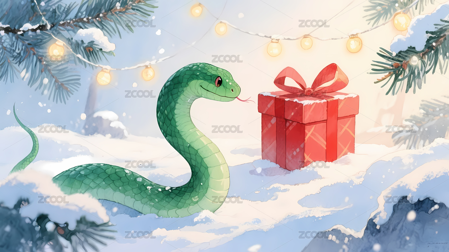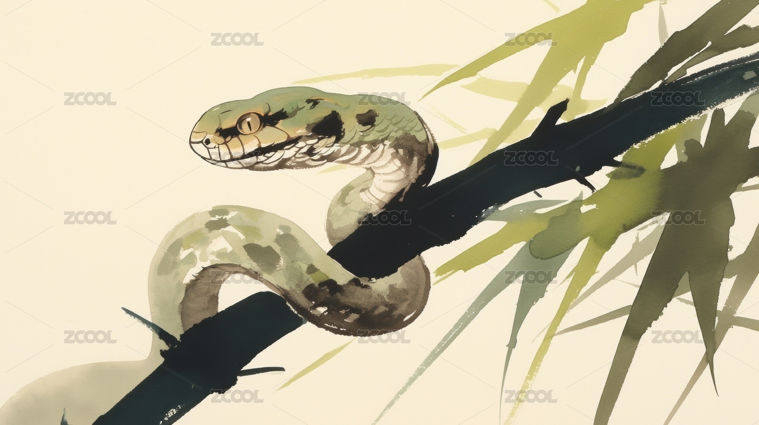 傳統(tǒng)中國綠白色水彩畫的蛇插畫海報(bào)背景