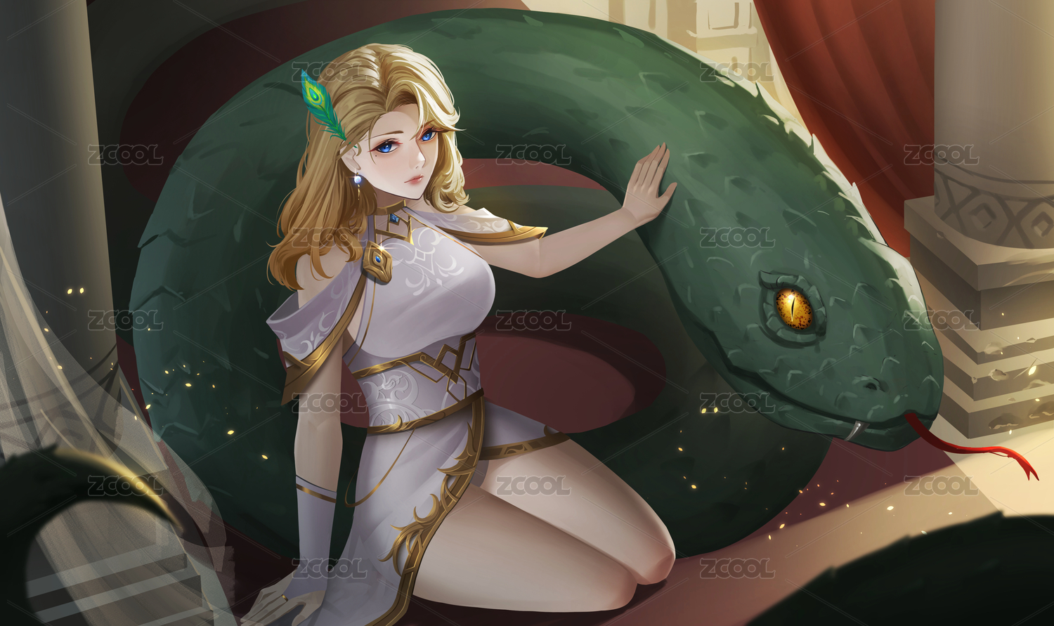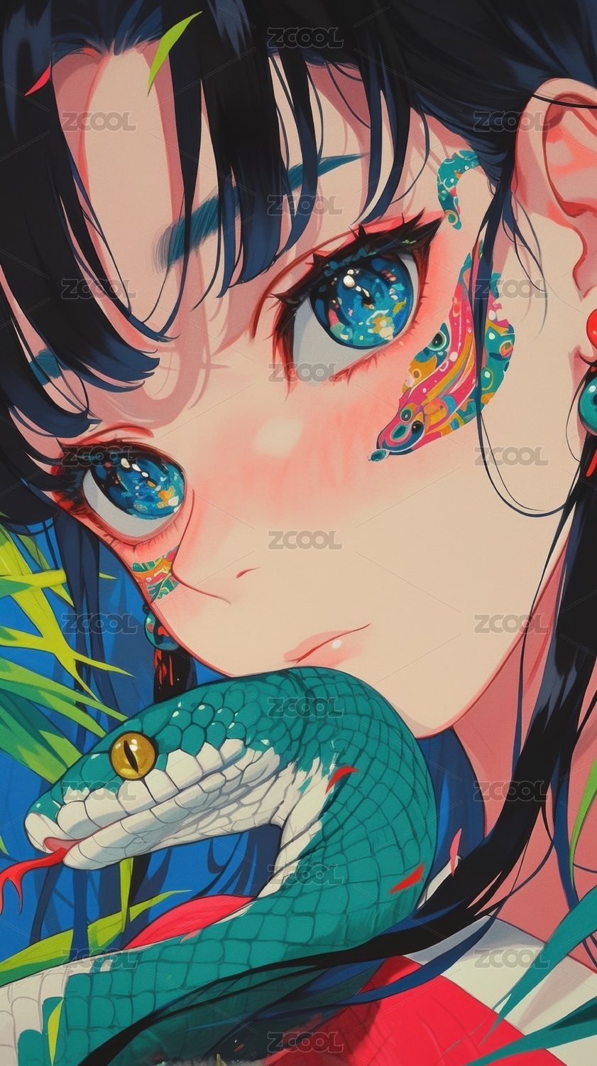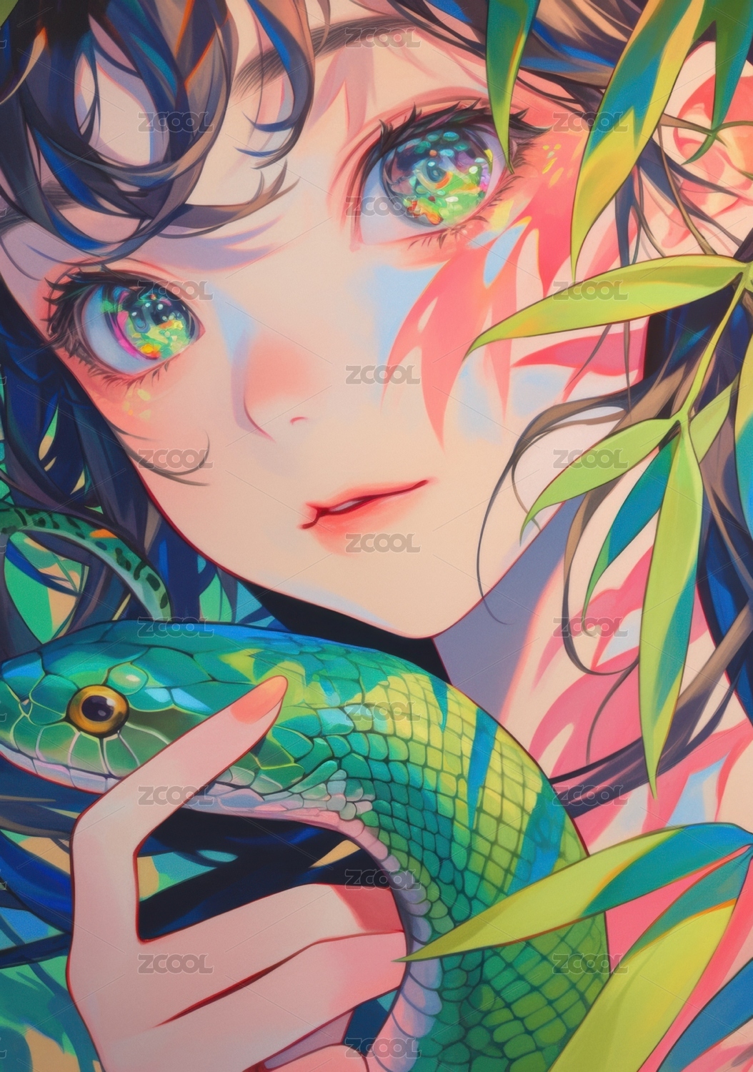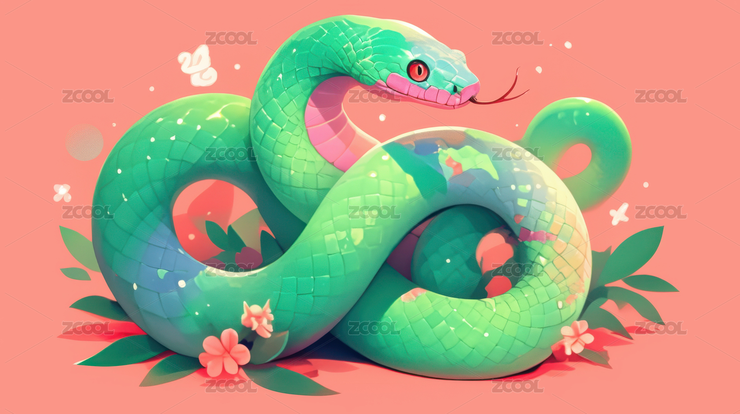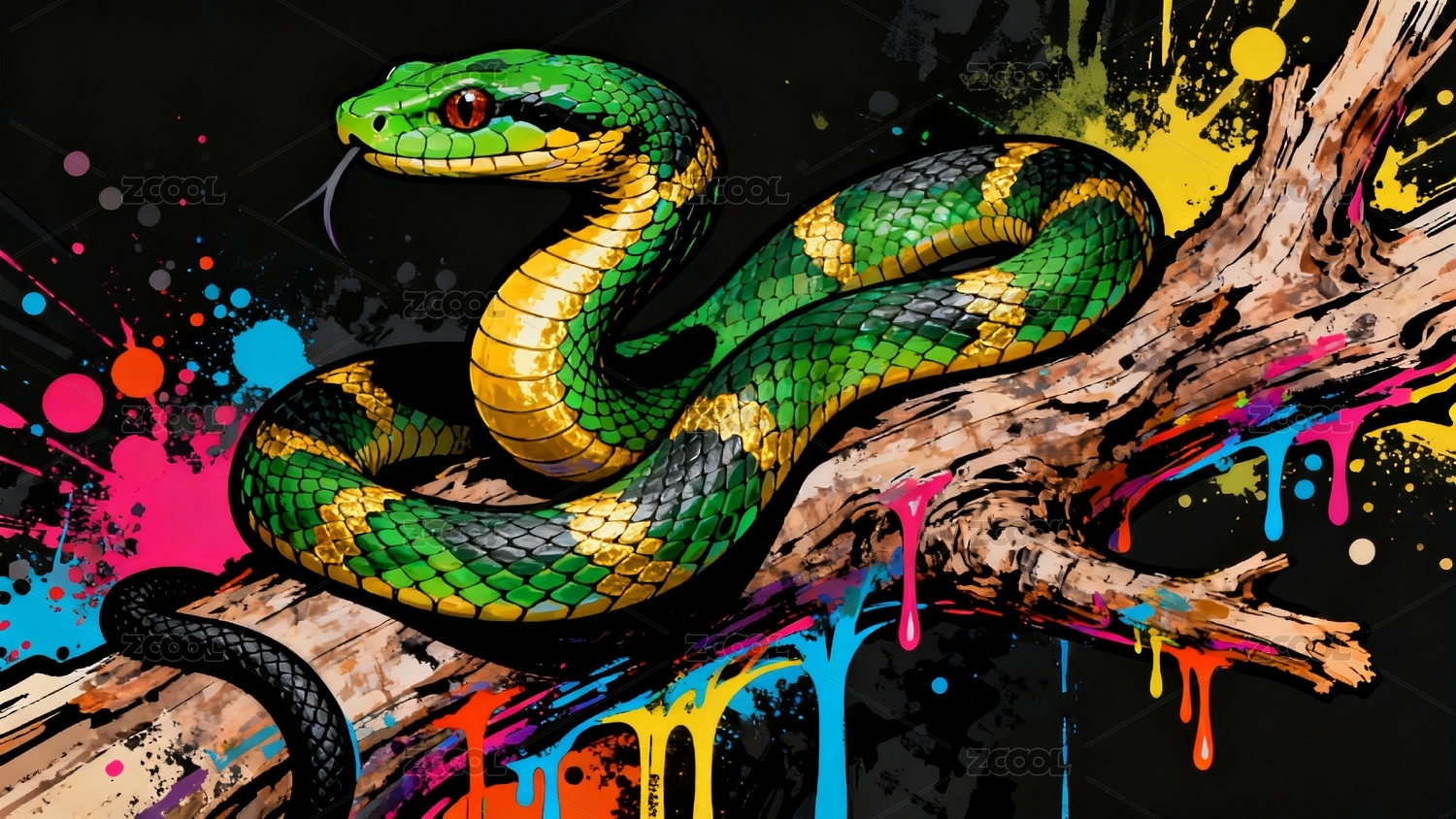 綠蛇炫彩涂鴉商業(yè)壁紙場景
