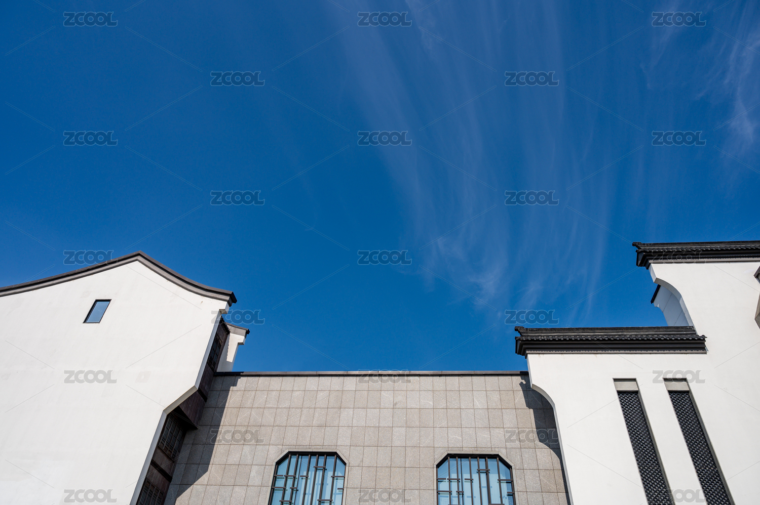 簡約雅致的江南仿古徽派建筑屋頂仰拍