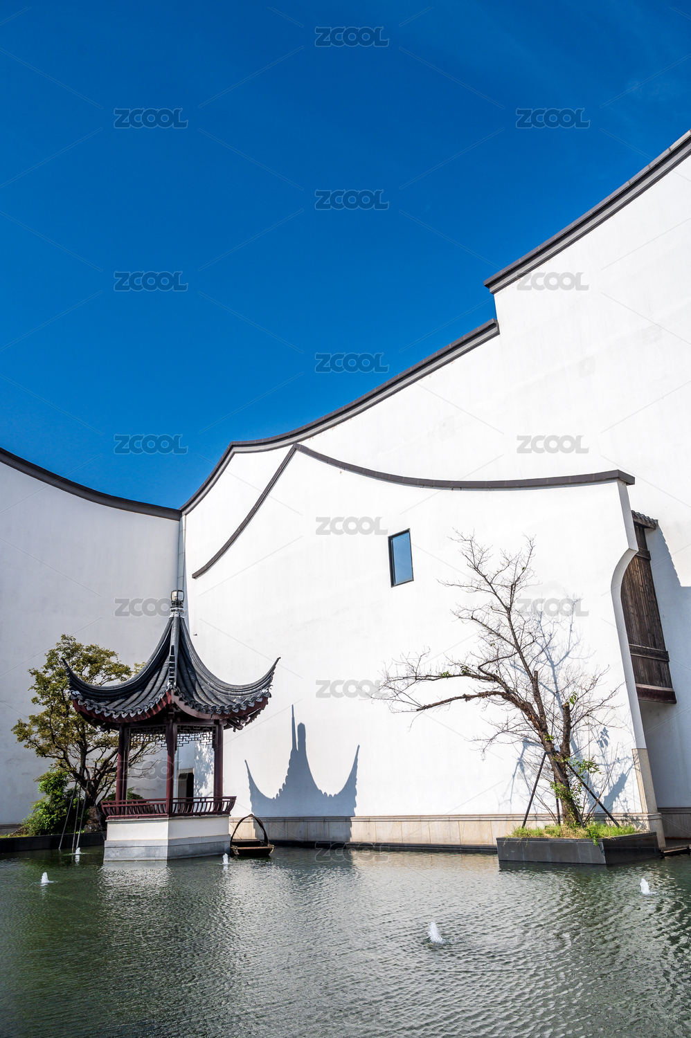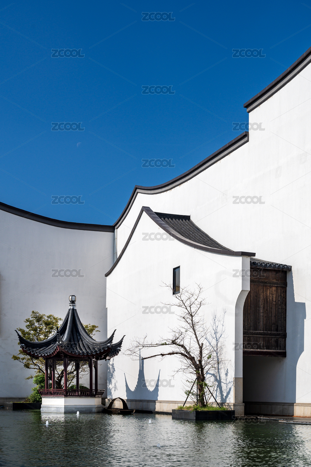 簡約雅致的江南仿古徽派建筑庭院涼亭