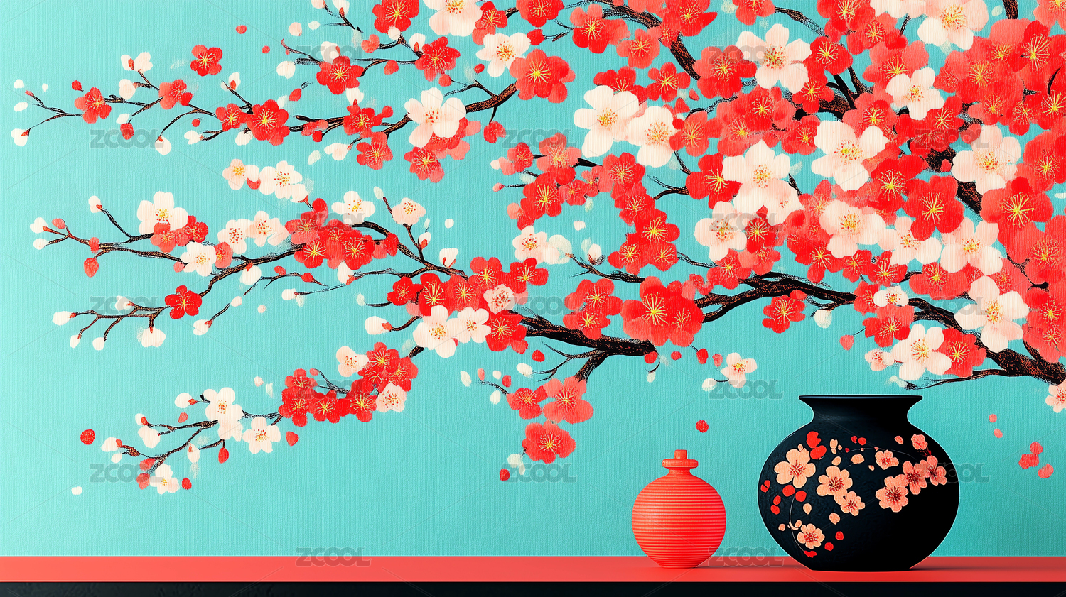藍色團扇裝飾壁畫 簡約雅致氛圍