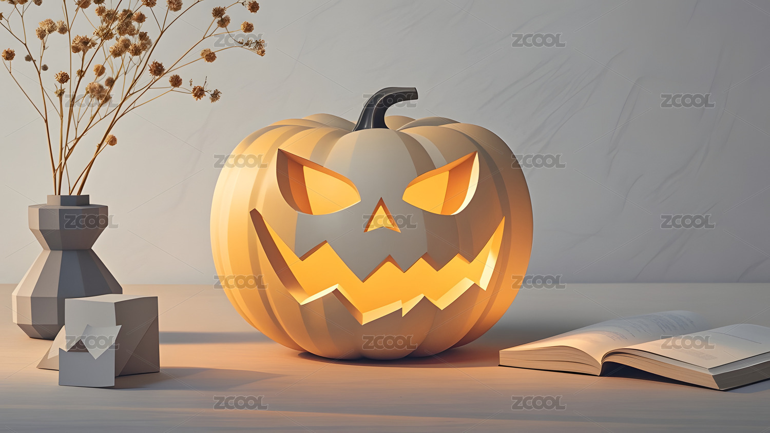 簡約場景南瓜燈書籍花瓶清新雅致場景