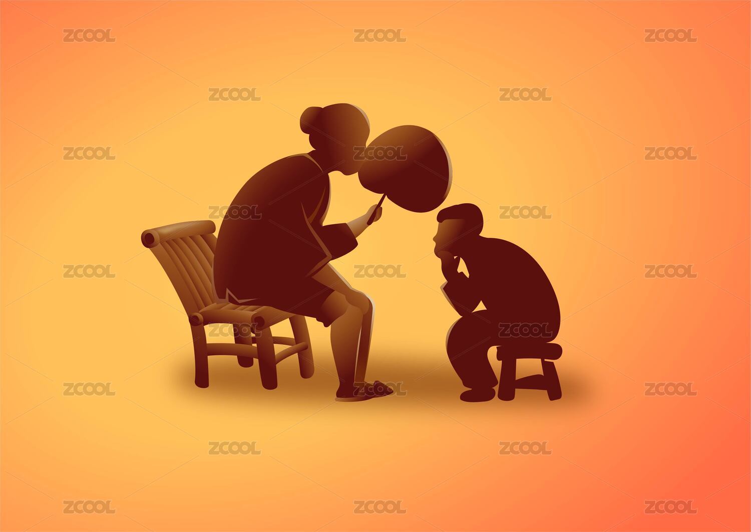 小孩聽老奶奶講故事傳統(tǒng)文化