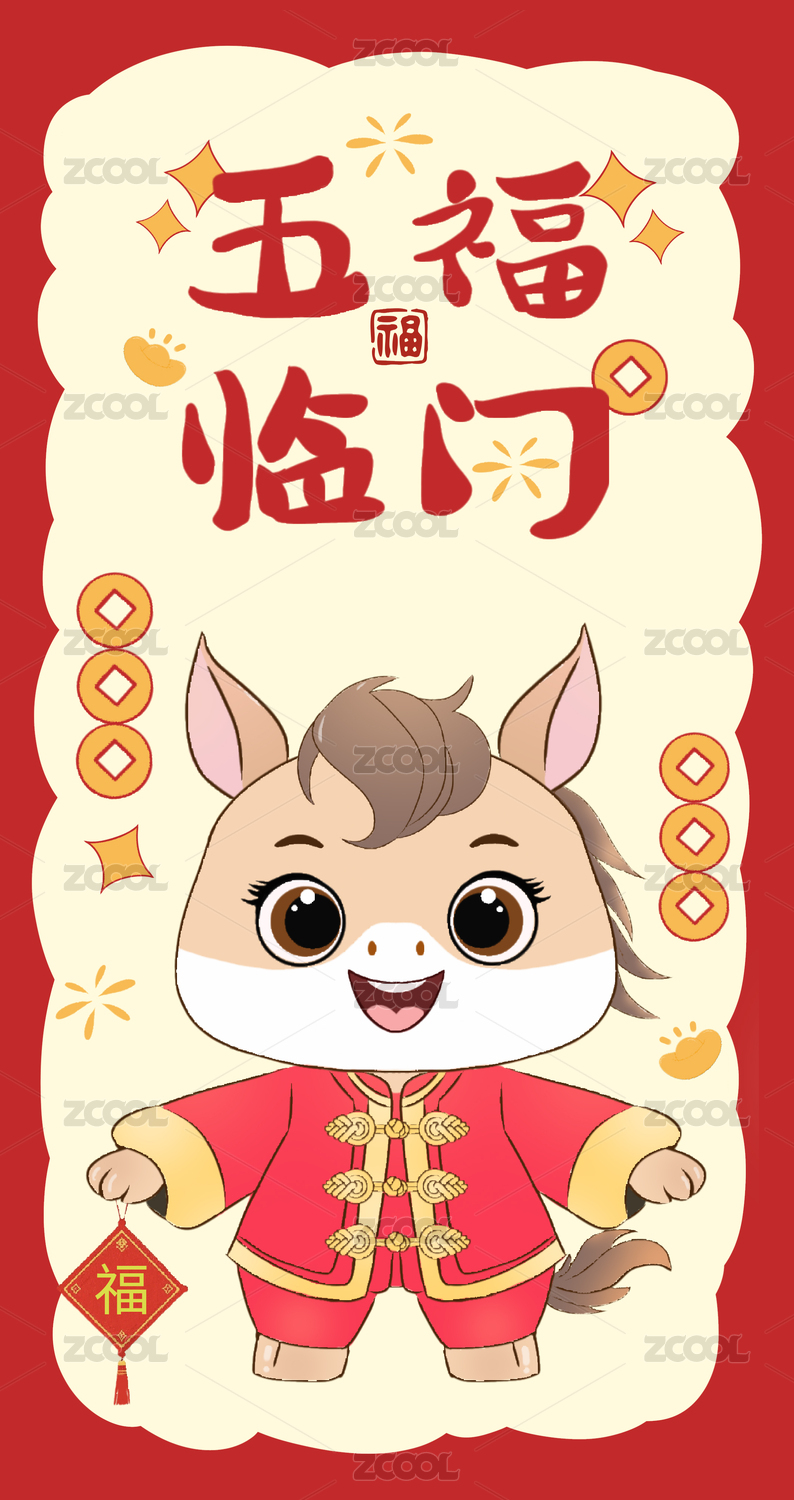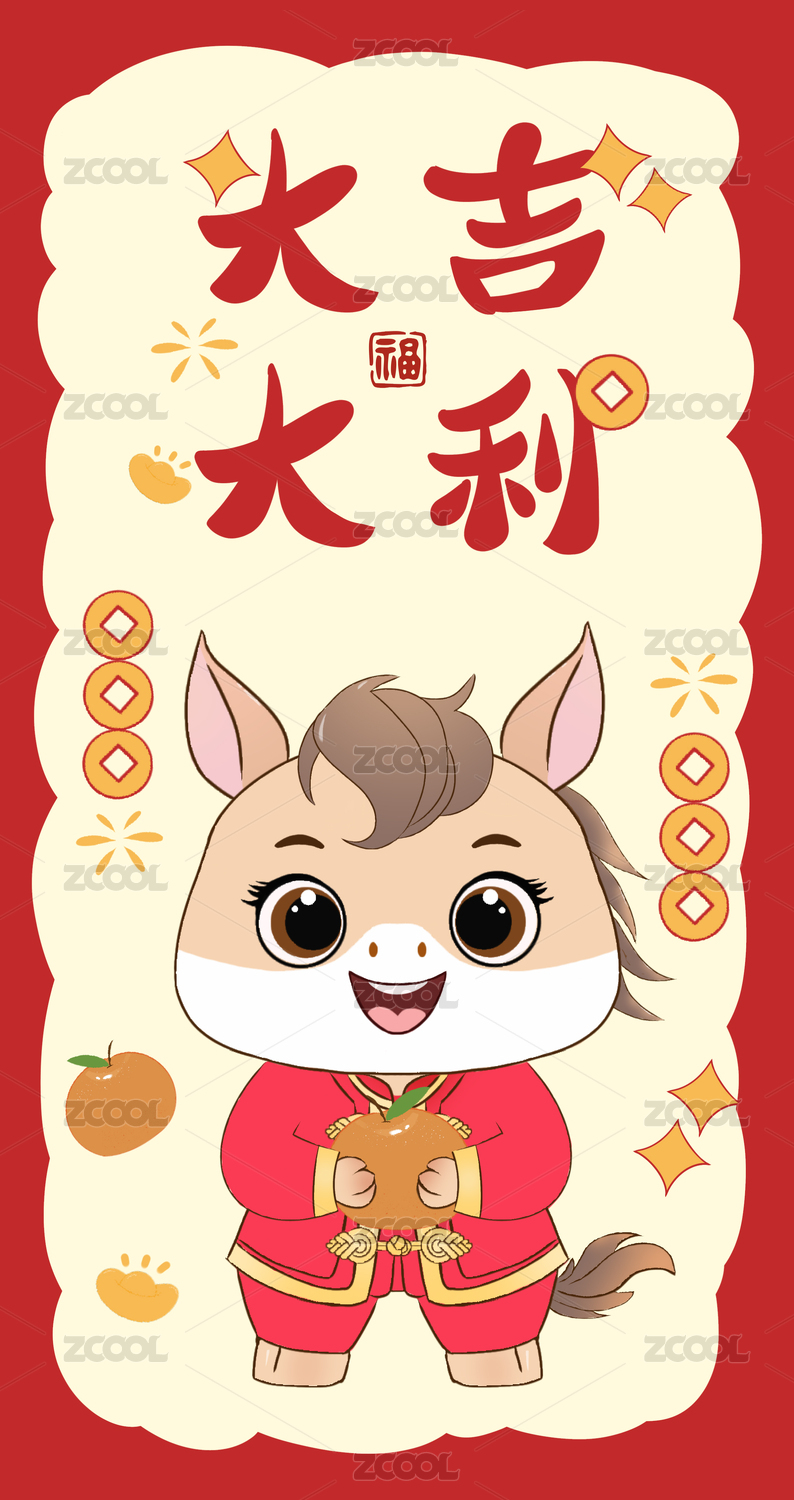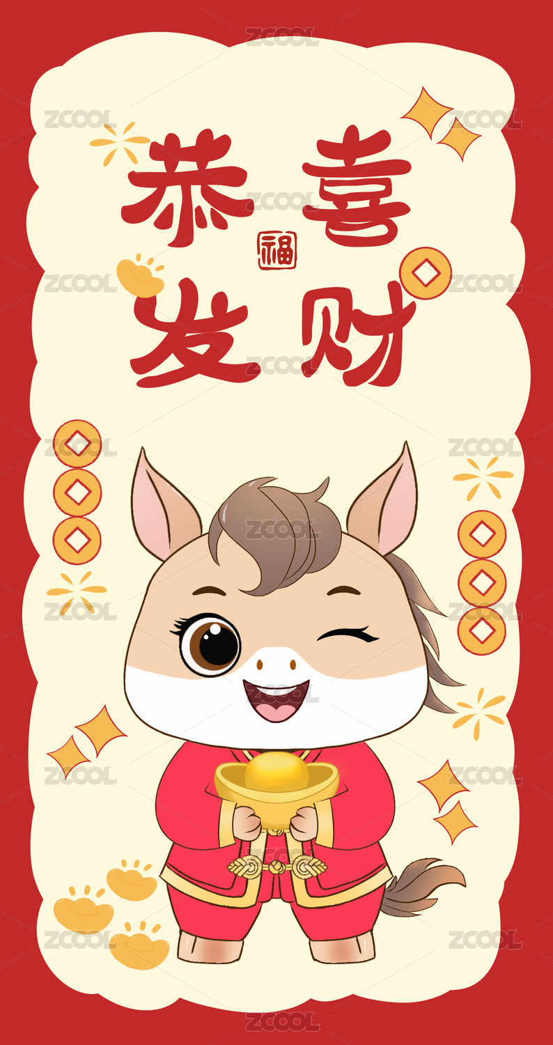 卡通馬年祝福紅包封面設(shè)計(jì)