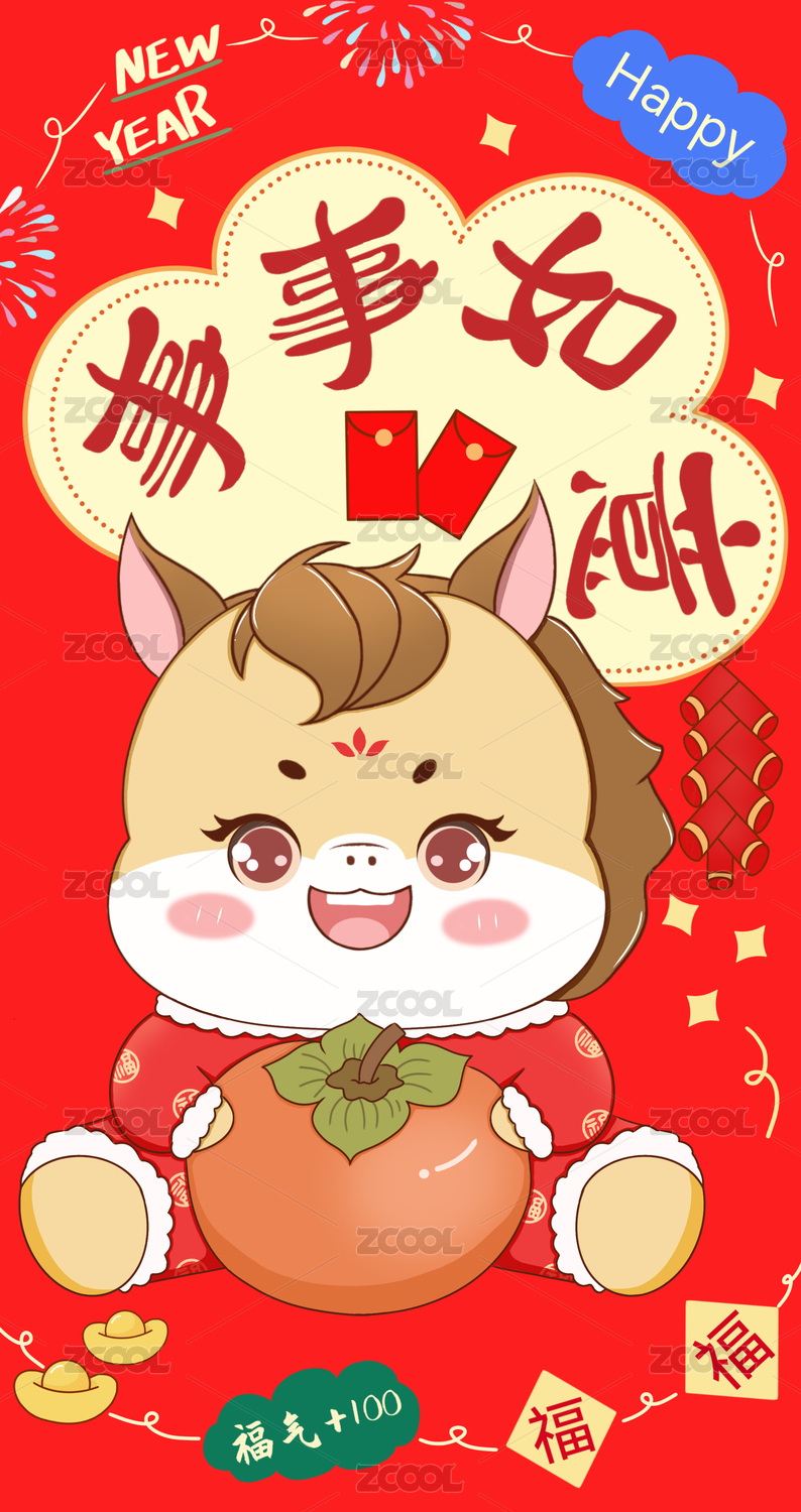 2026馬年柿柿如意紅包封面設(shè)計(jì)