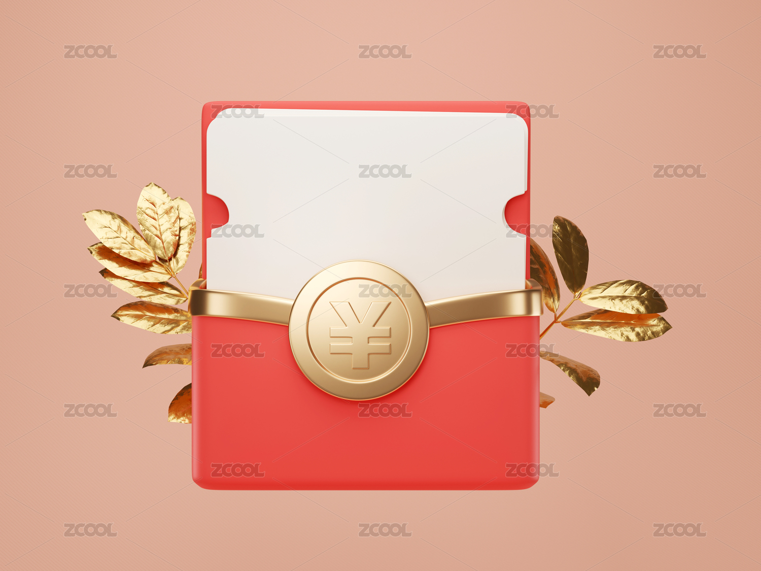 3D紅包邊上環(huán)繞金色優(yōu)惠券促銷(xiāo)活動(dòng)素材