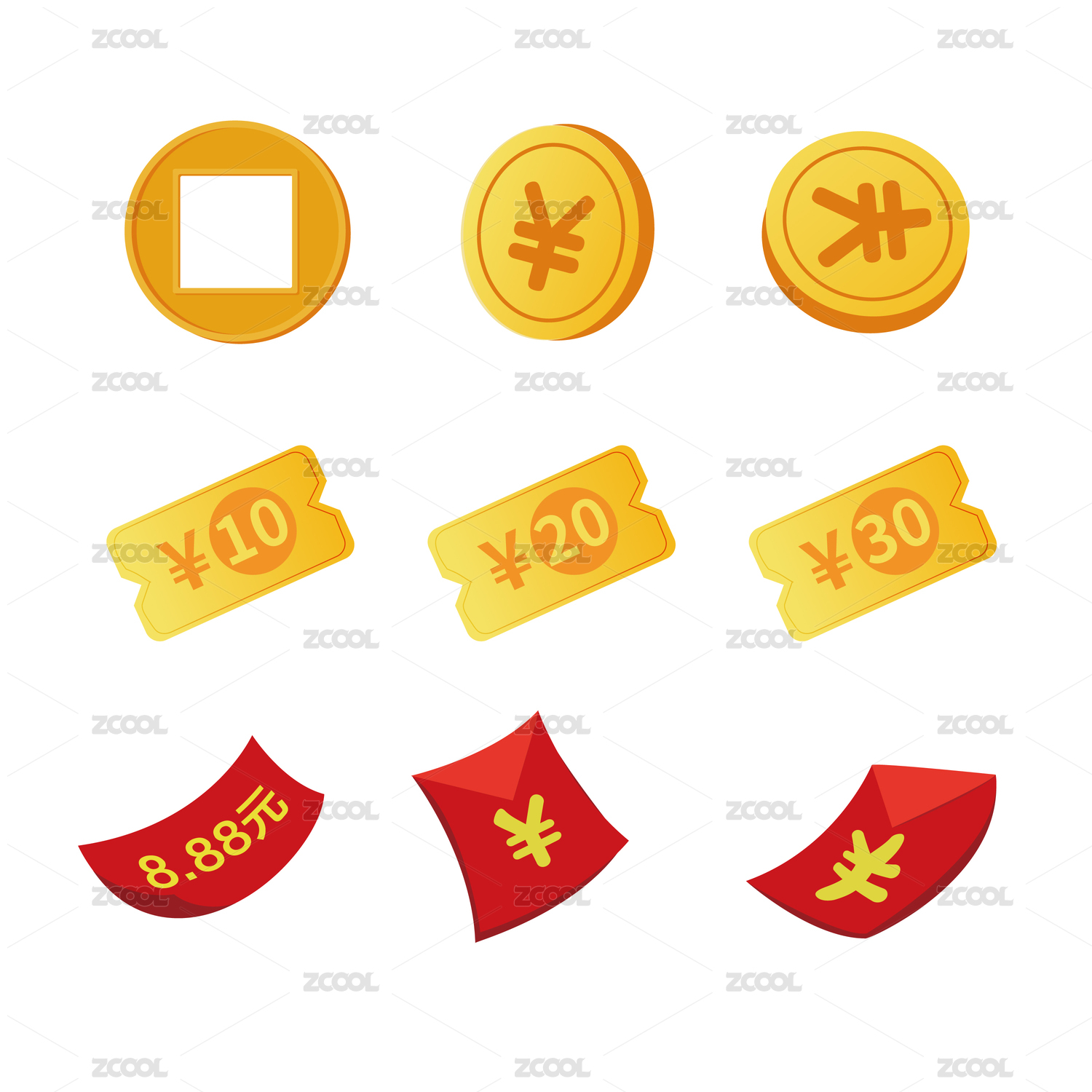 節(jié)日活動(dòng)紅包優(yōu)惠券金幣矢量插畫(huà)素材