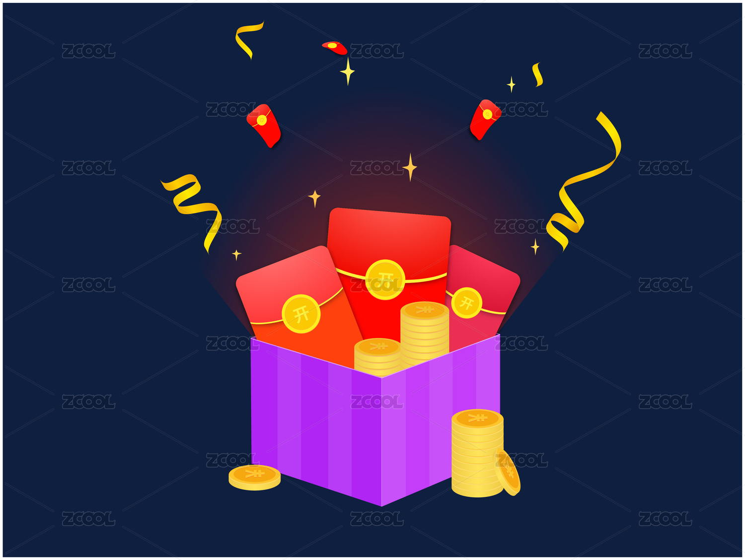 卡通禮盒金幣紅包優(yōu)惠券矢量插畫(huà)背景素材