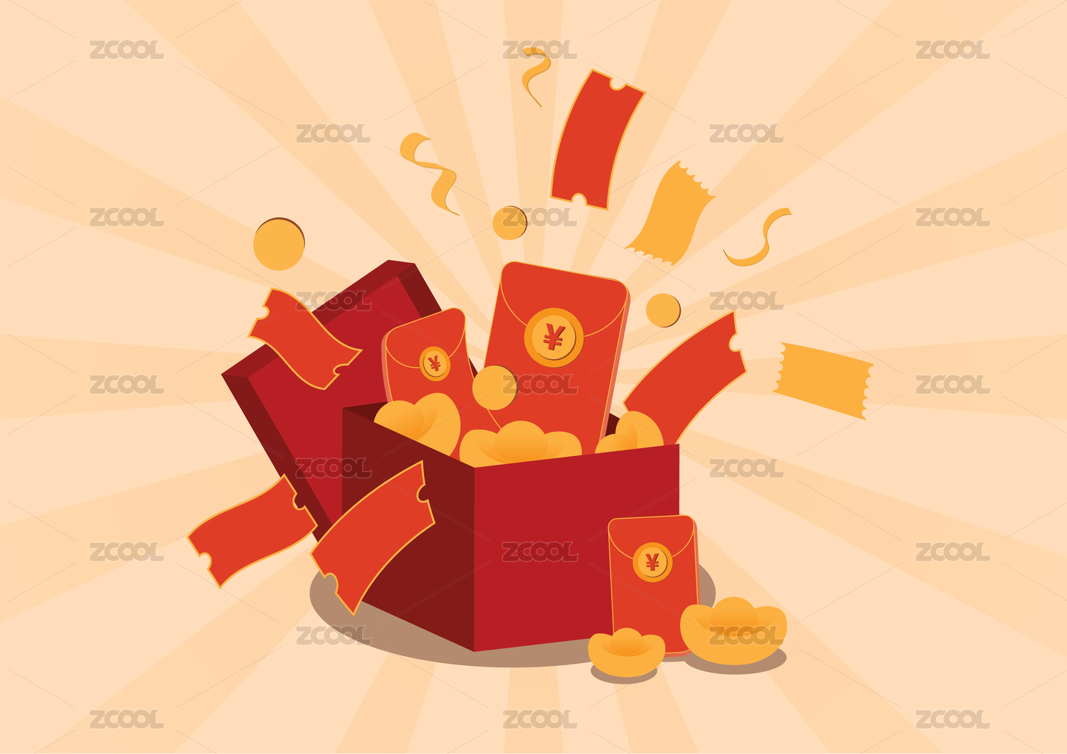 節(jié)日活動(dòng)紅包優(yōu)惠券禮盒矢量插畫(huà)素材