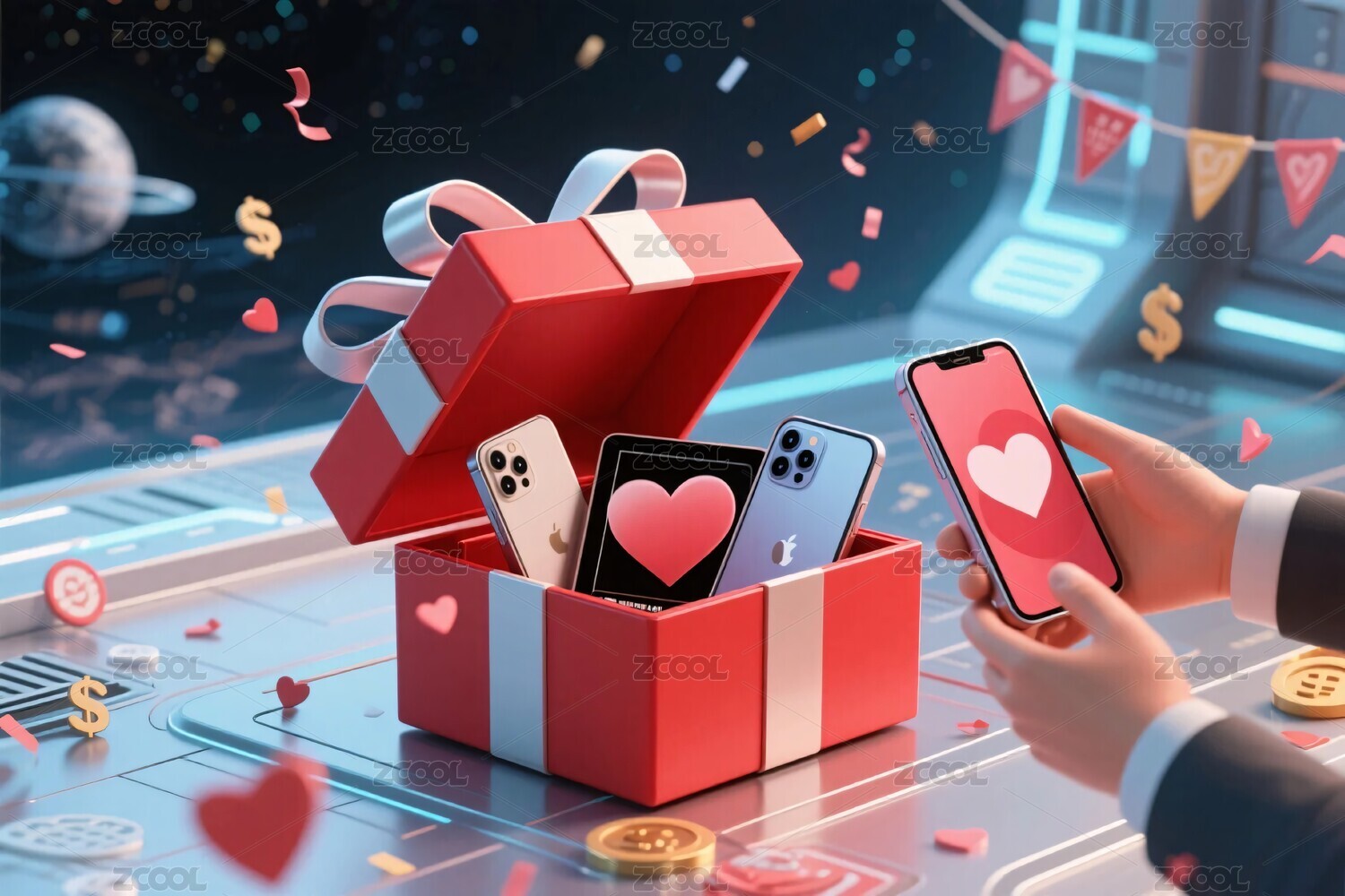 紅色創(chuàng)意信箱抽獎吐獎機(jī)飛出金色優(yōu)惠券