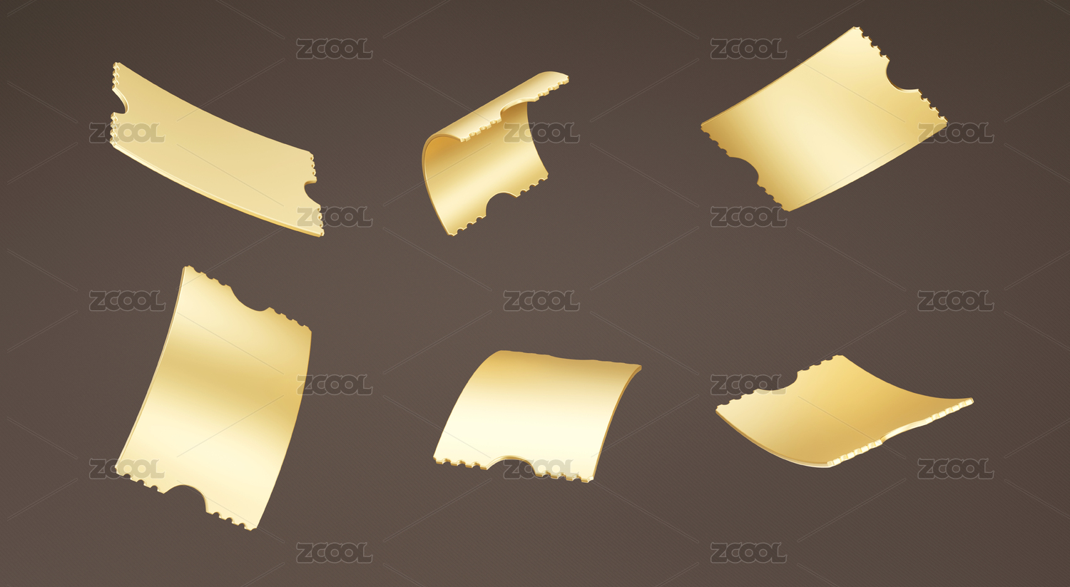 不同角度的3D金色優(yōu)惠券創(chuàng)意素材