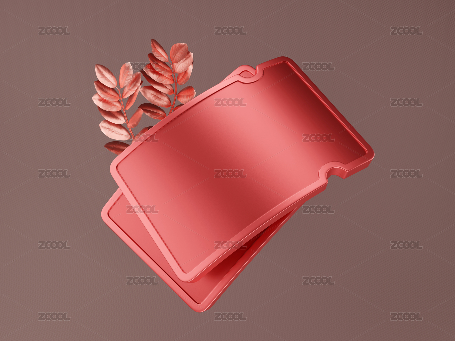 3D紅色折扣優(yōu)惠券和紅葉子創(chuàng)意素材