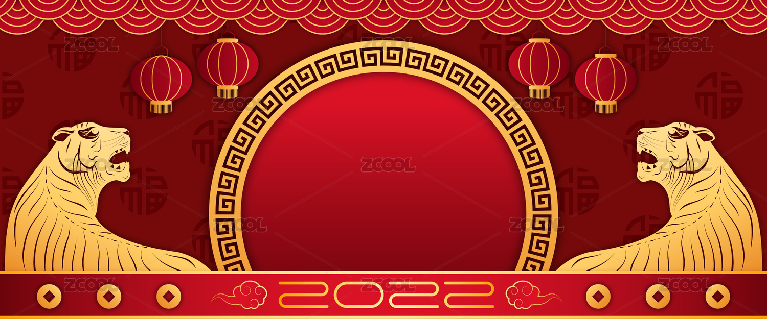 中國風(fēng)剪紙兩只老虎回望圓形邊框