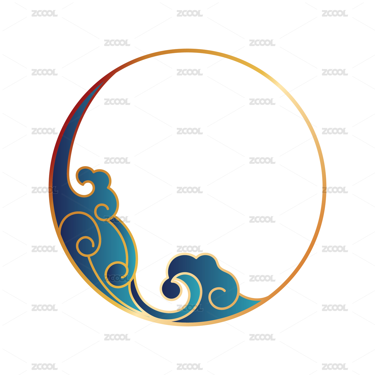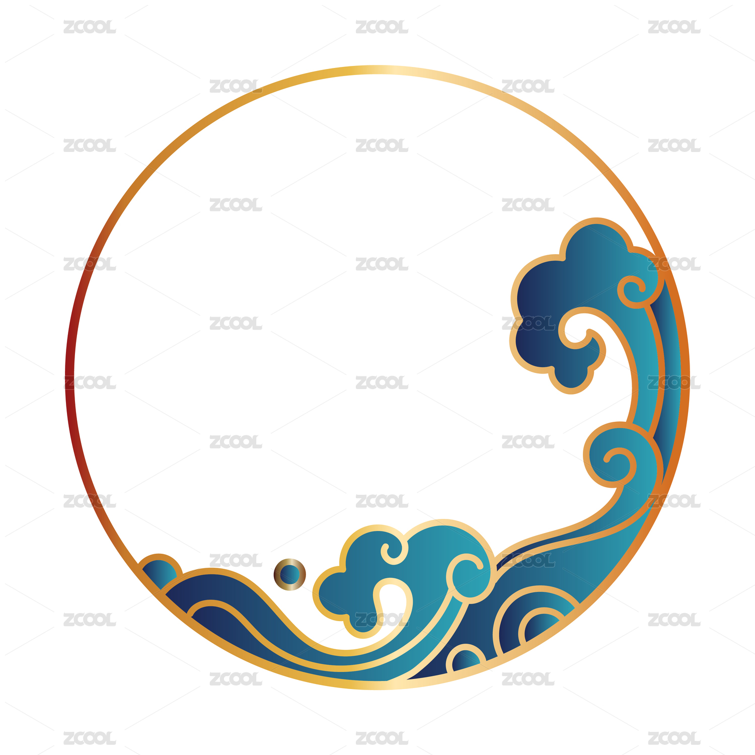 粉藍(lán)色國潮牡丹祥云漸變燙金圓形邊框元素