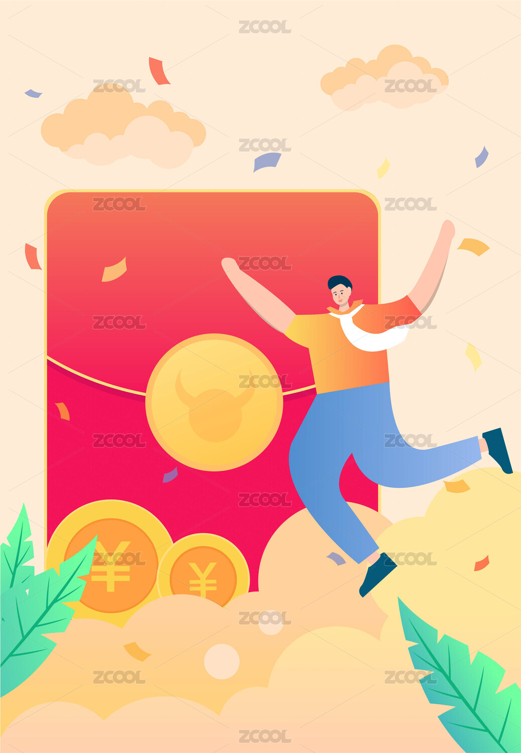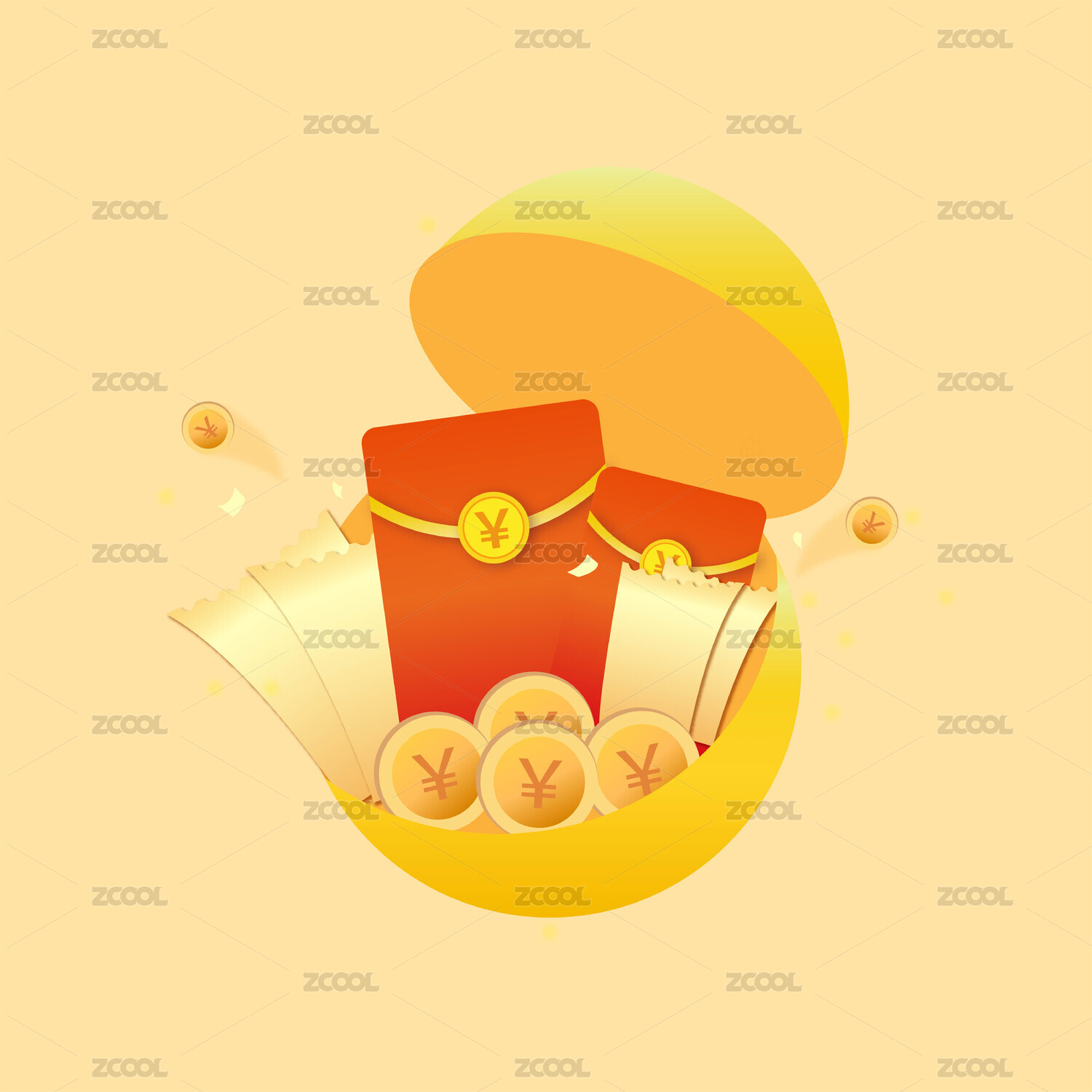 卡通優(yōu)惠券代金券新年主題3D渲染