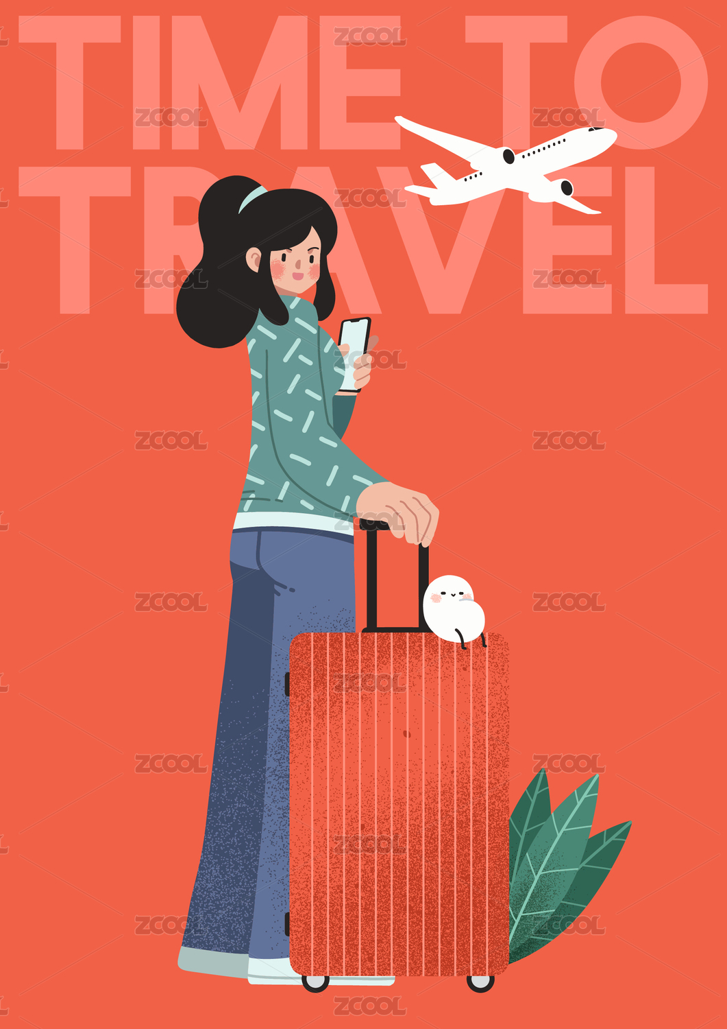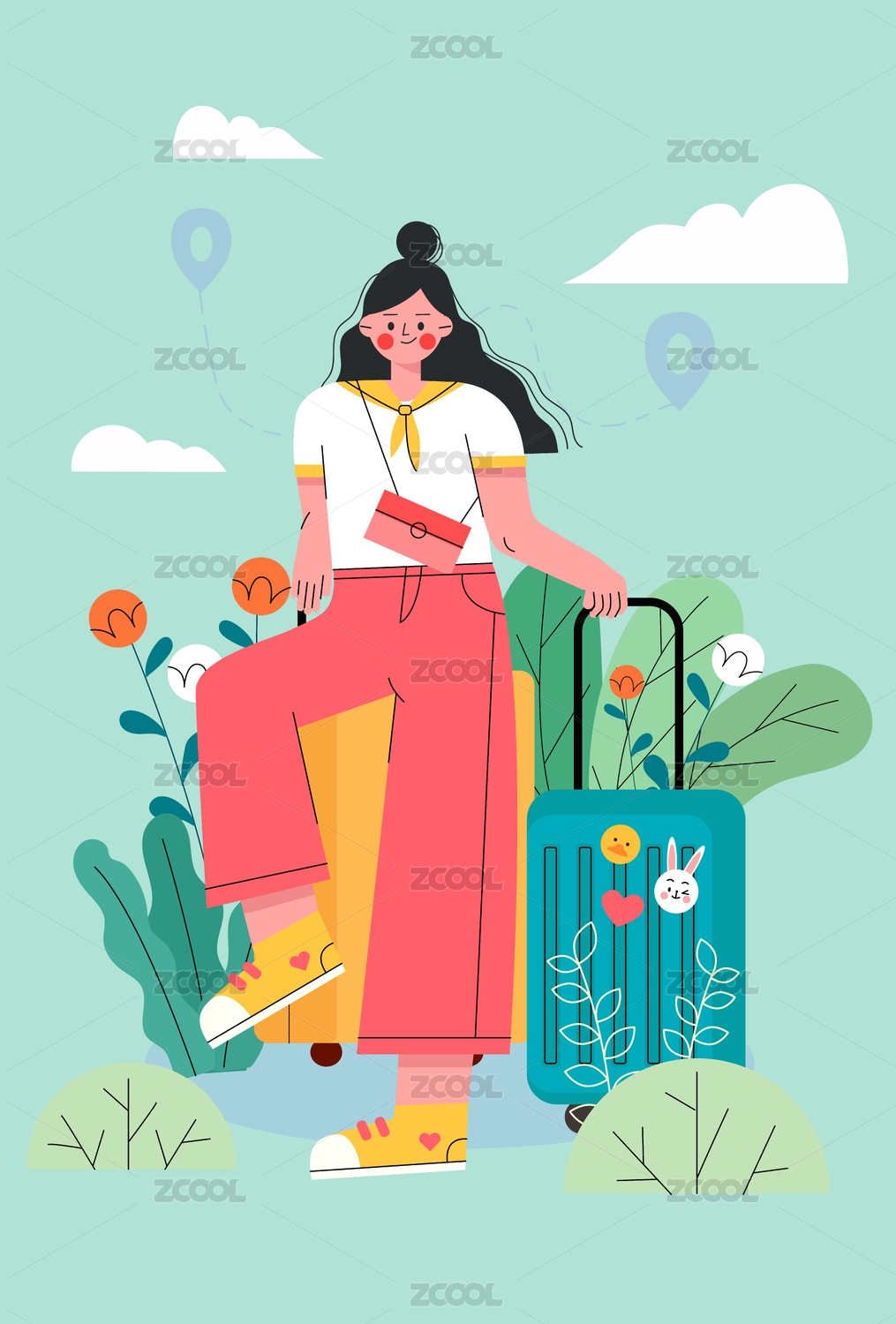 假期旅行插畫手拿行李箱的女孩