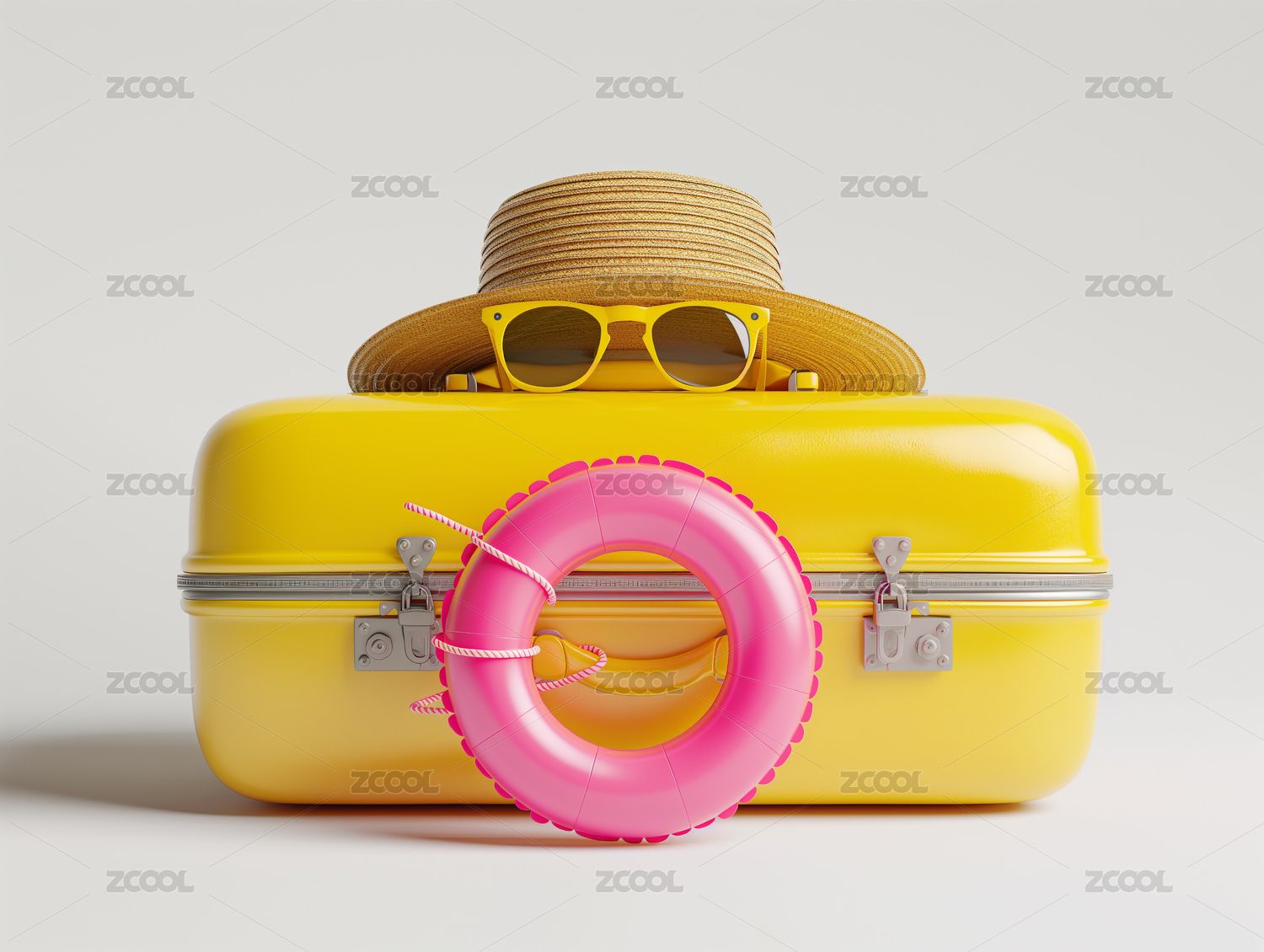 去海邊旅游攜帶的行李箱和游泳圈