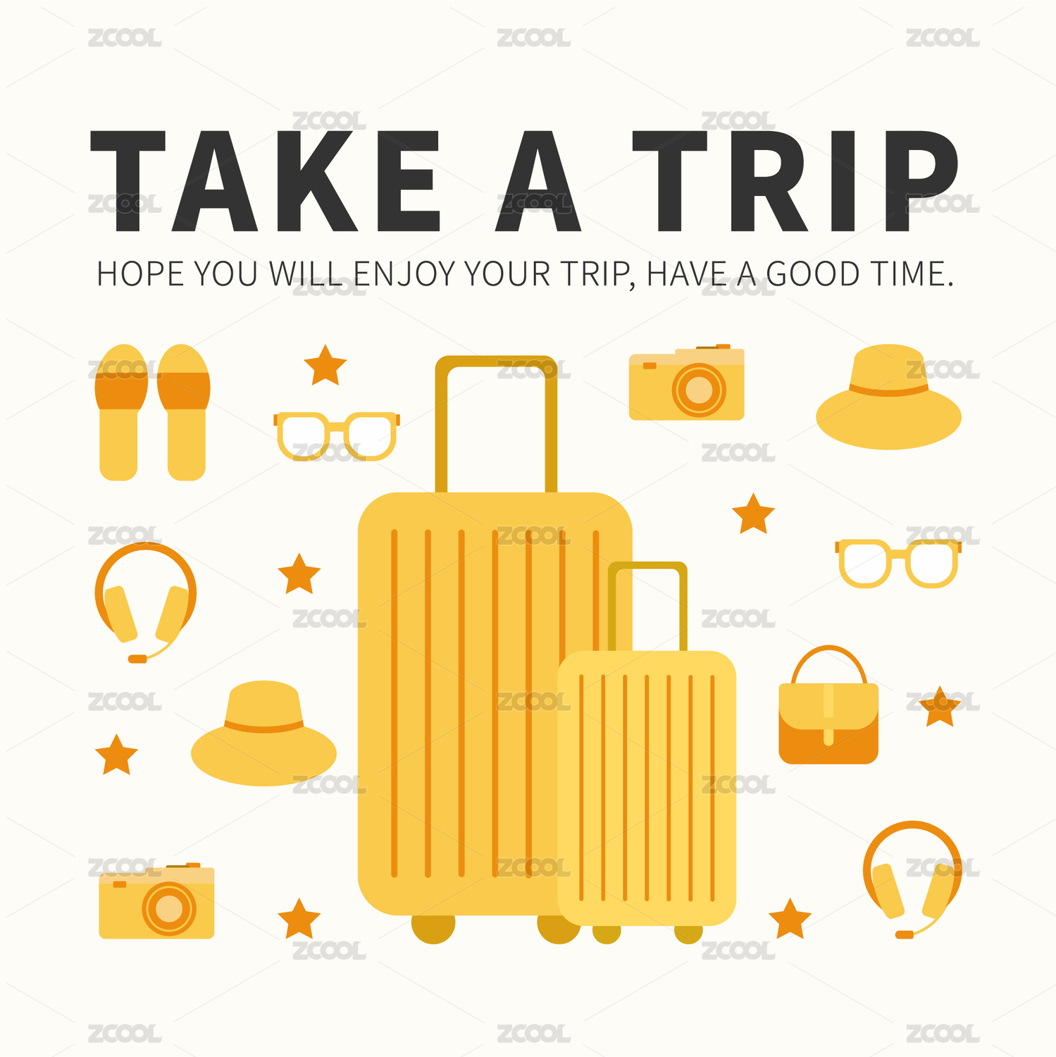 旅行旅游度假主題行李箱手提箱箱子插畫