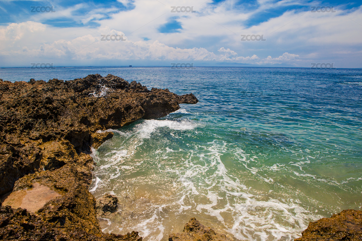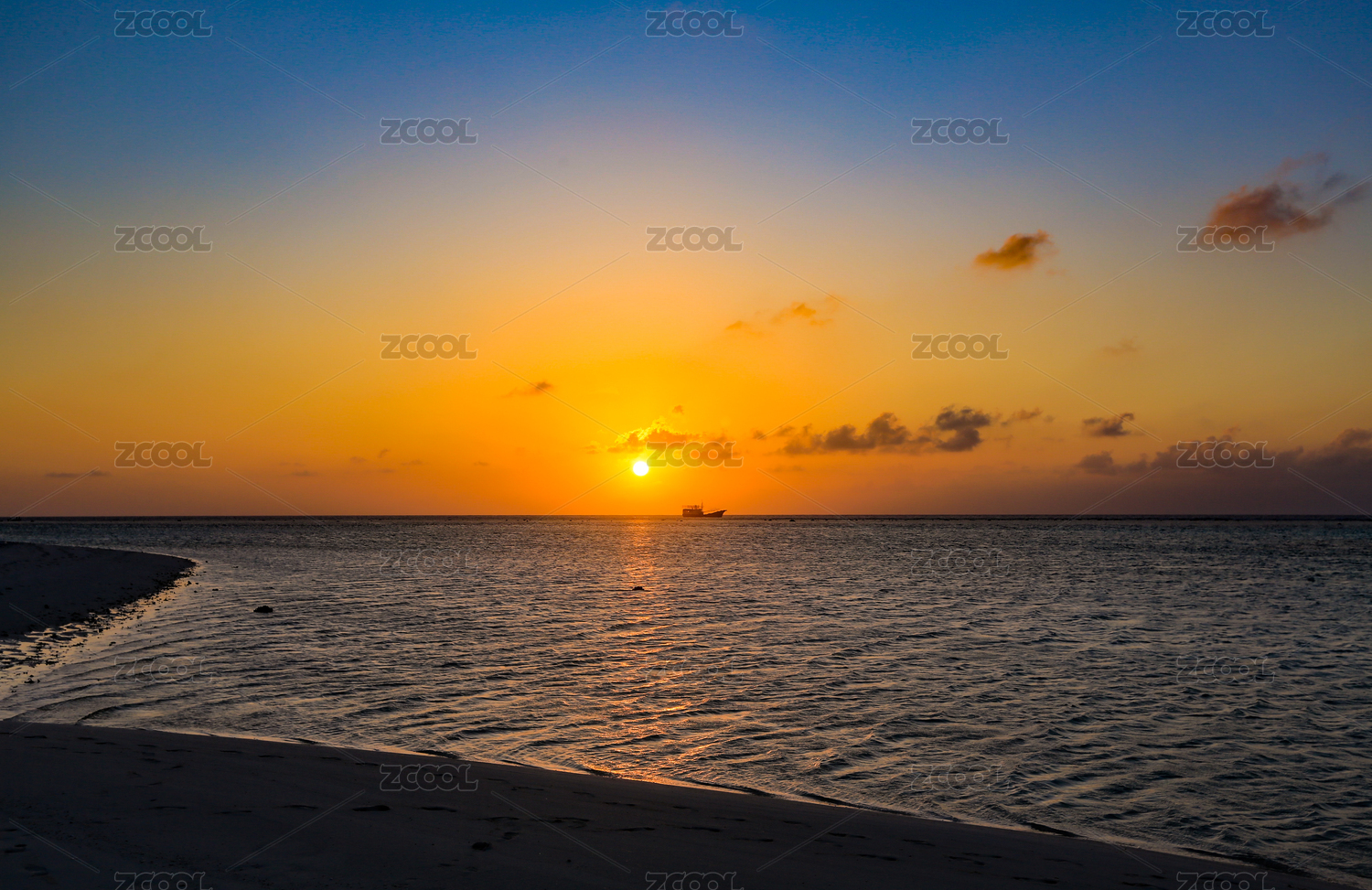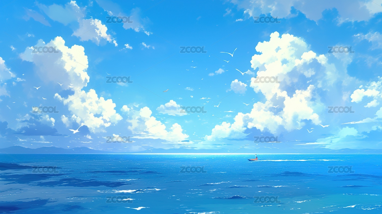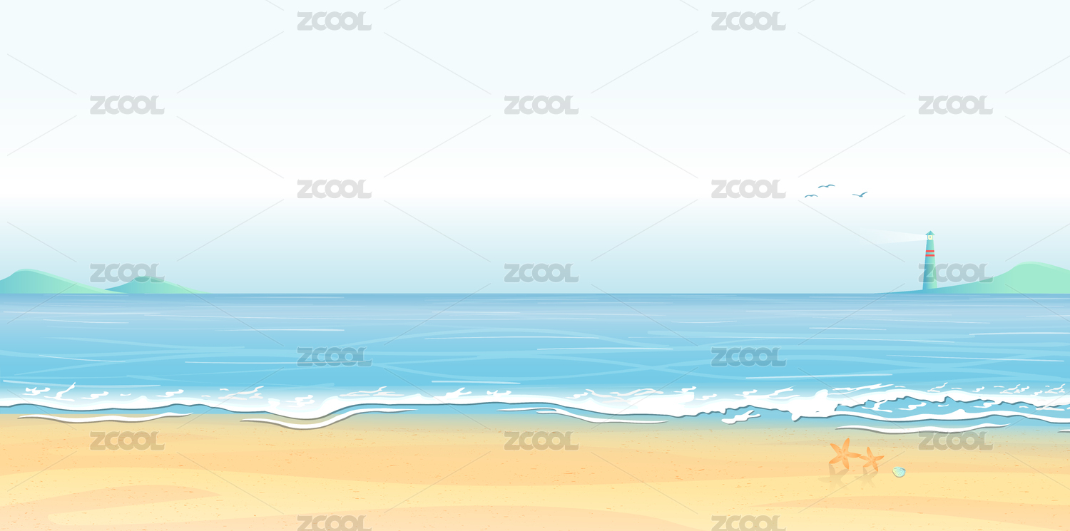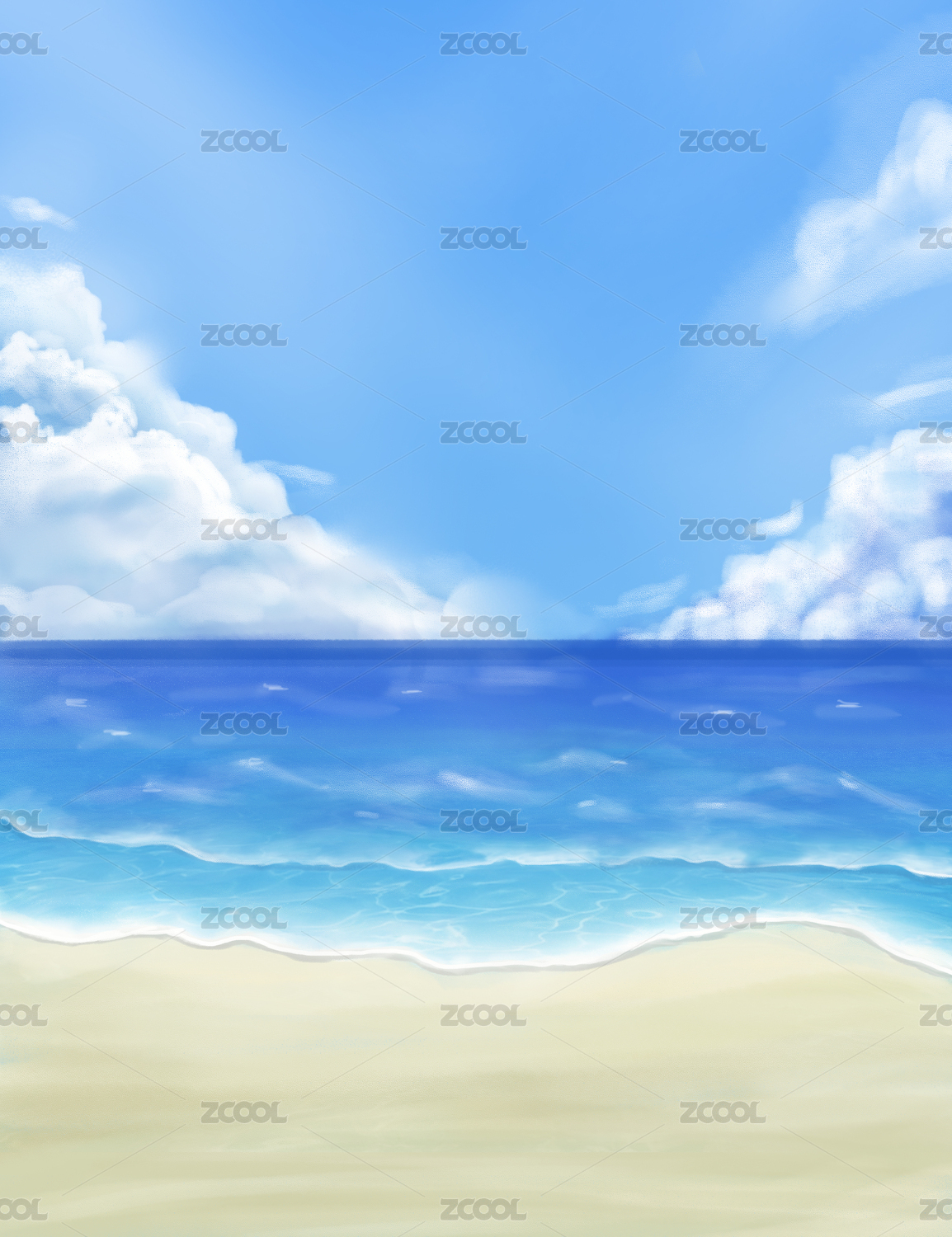 藍(lán)色平靜的海洋和柔軟的沙灘海岸插畫背景