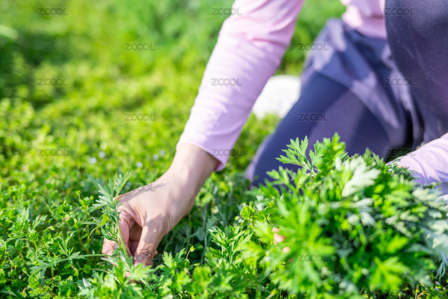 春天采摘中草藥艾草