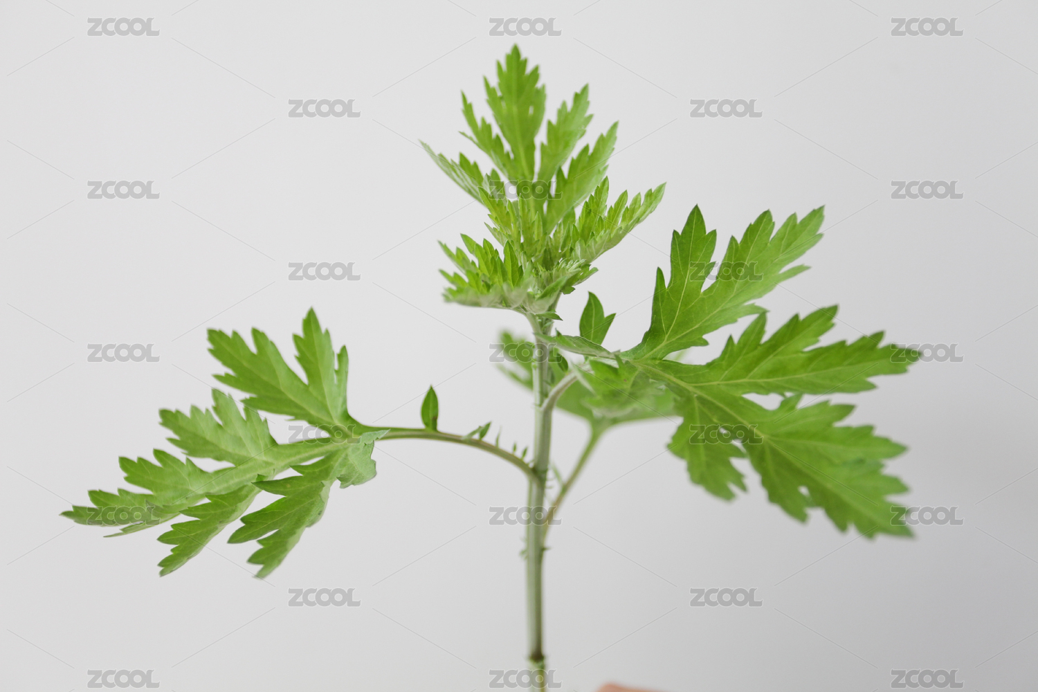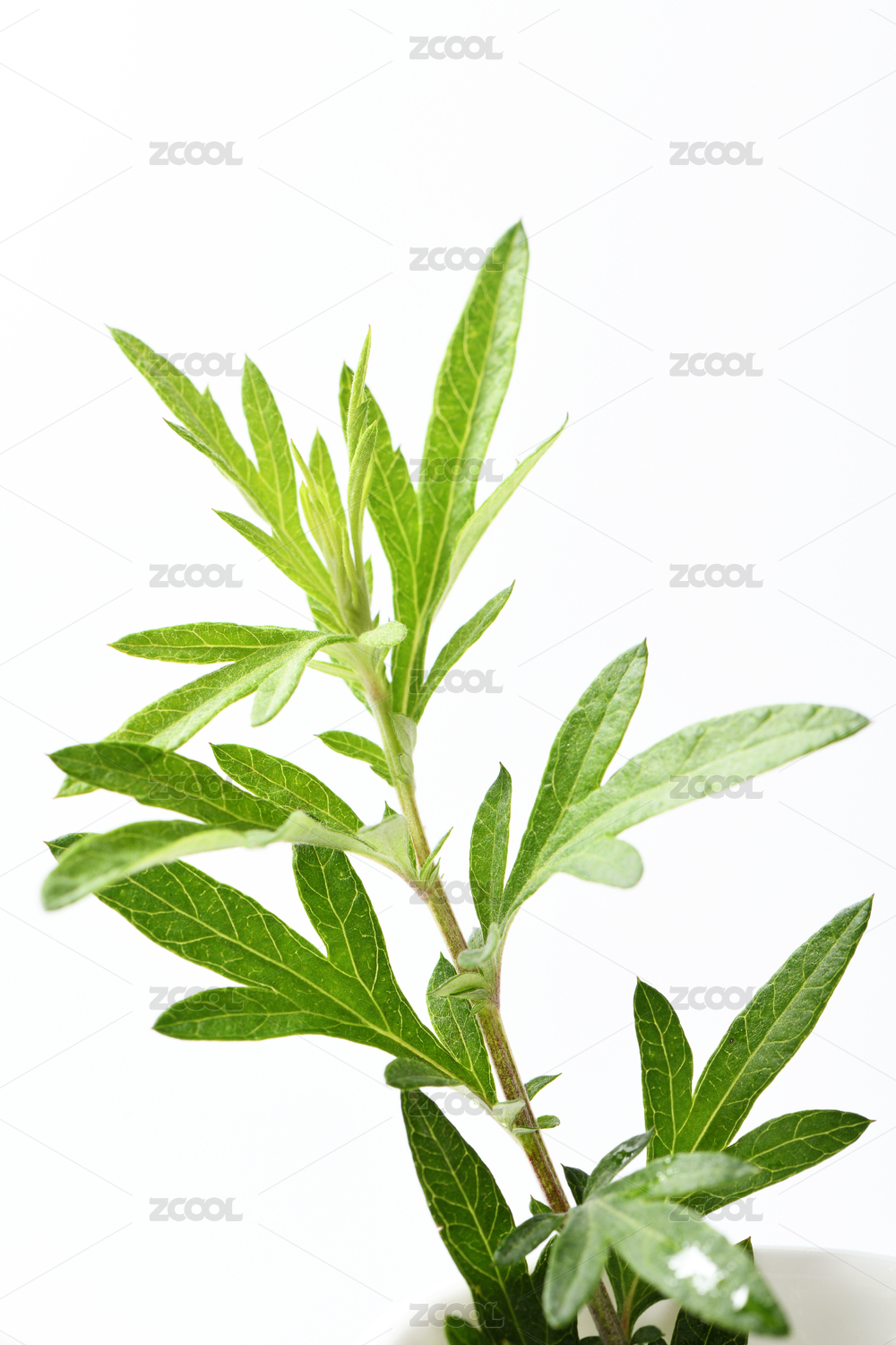 白色背景單株蘄艾草艾葉子特寫