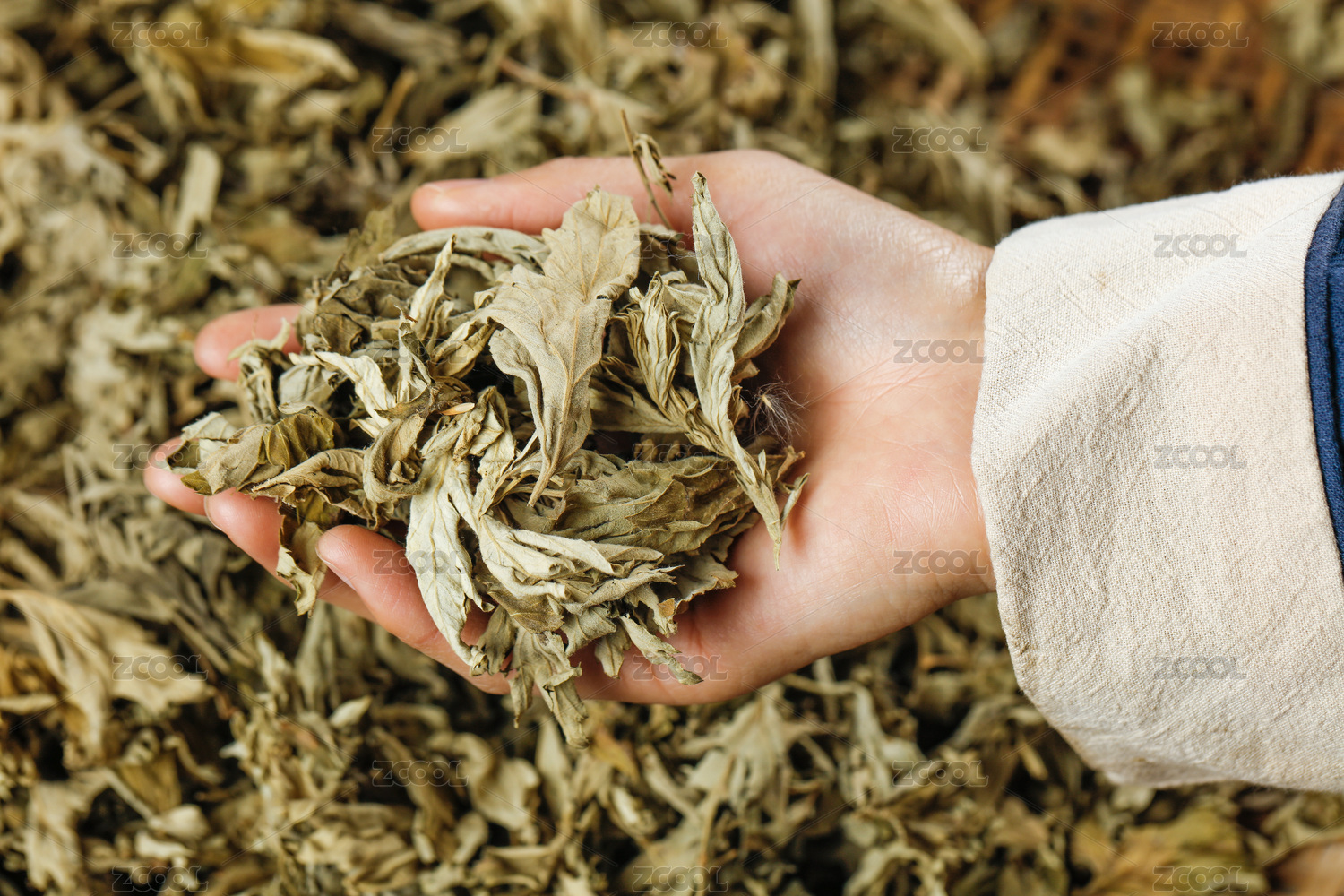 傳統(tǒng)中醫(yī)藥材艾草微距特寫